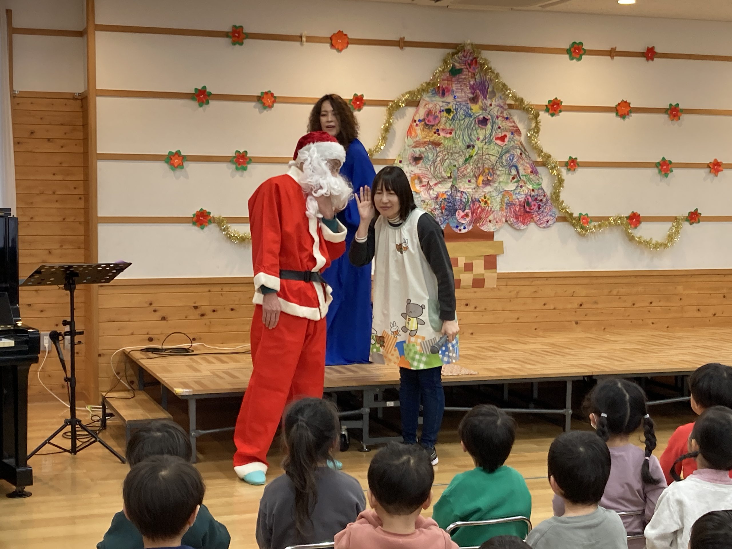 鈴の音が聞こえてきて、なんとサンタクロースの登場です!