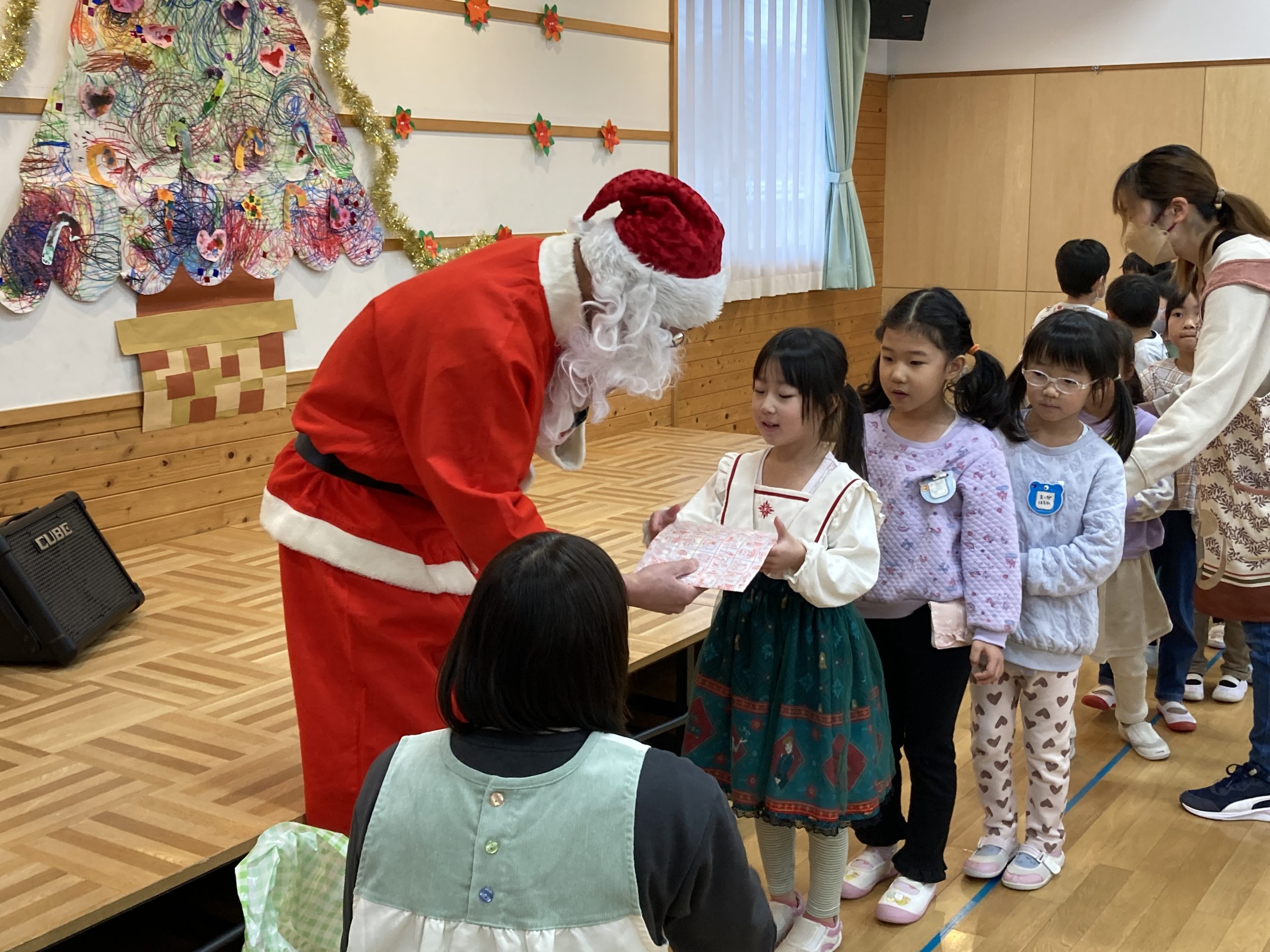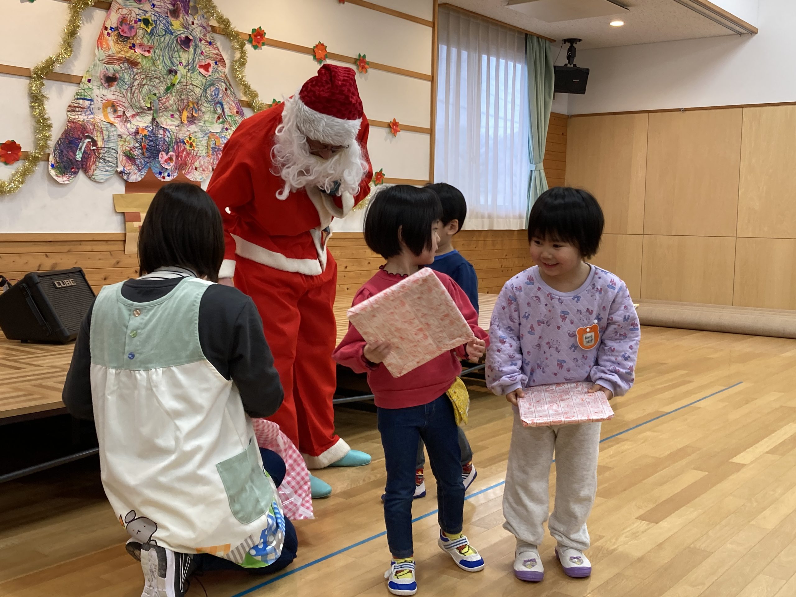 一人ひとりサンタさんからプレゼントをもらって大喜びです。