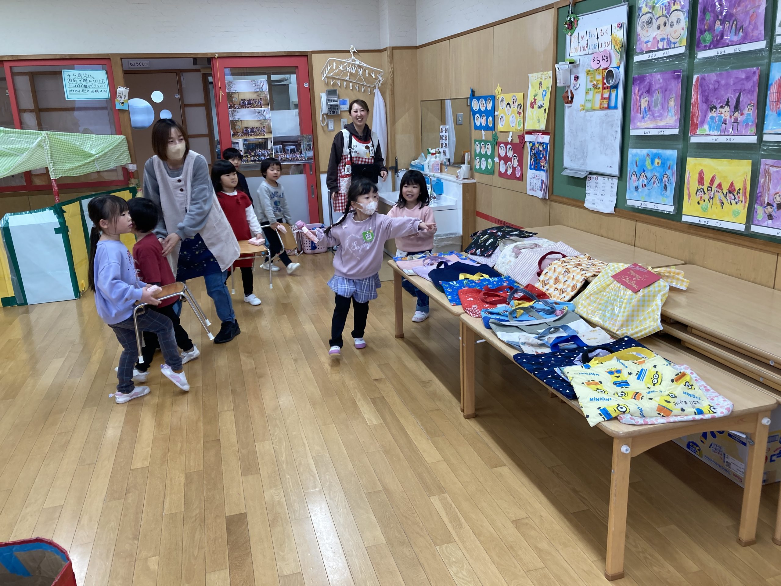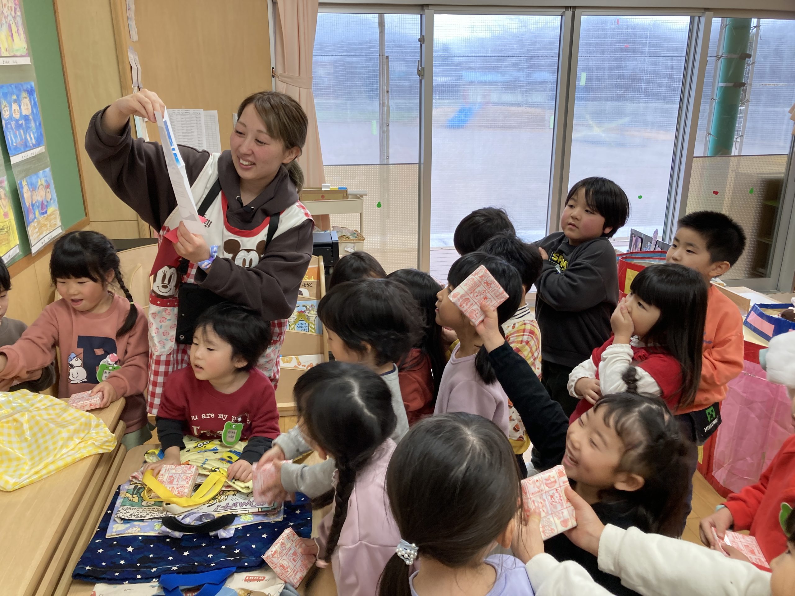 中身は、クラスでみんなで遊ぶおもちゃでした。