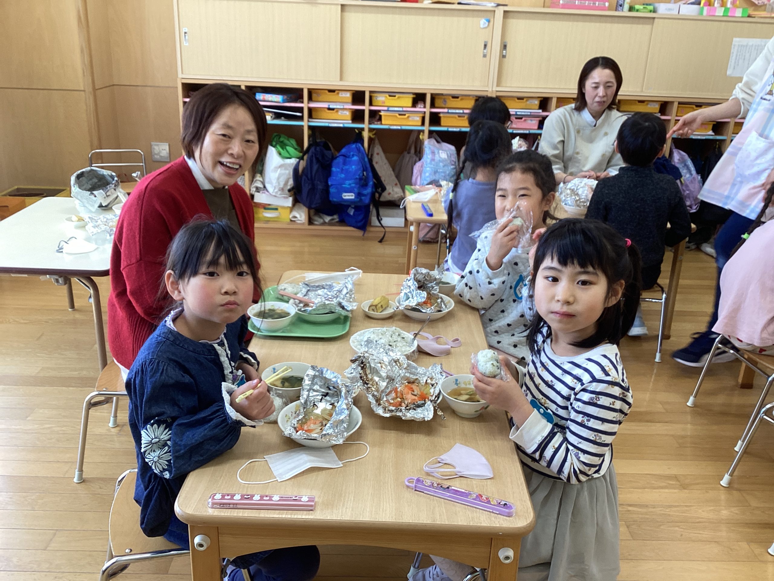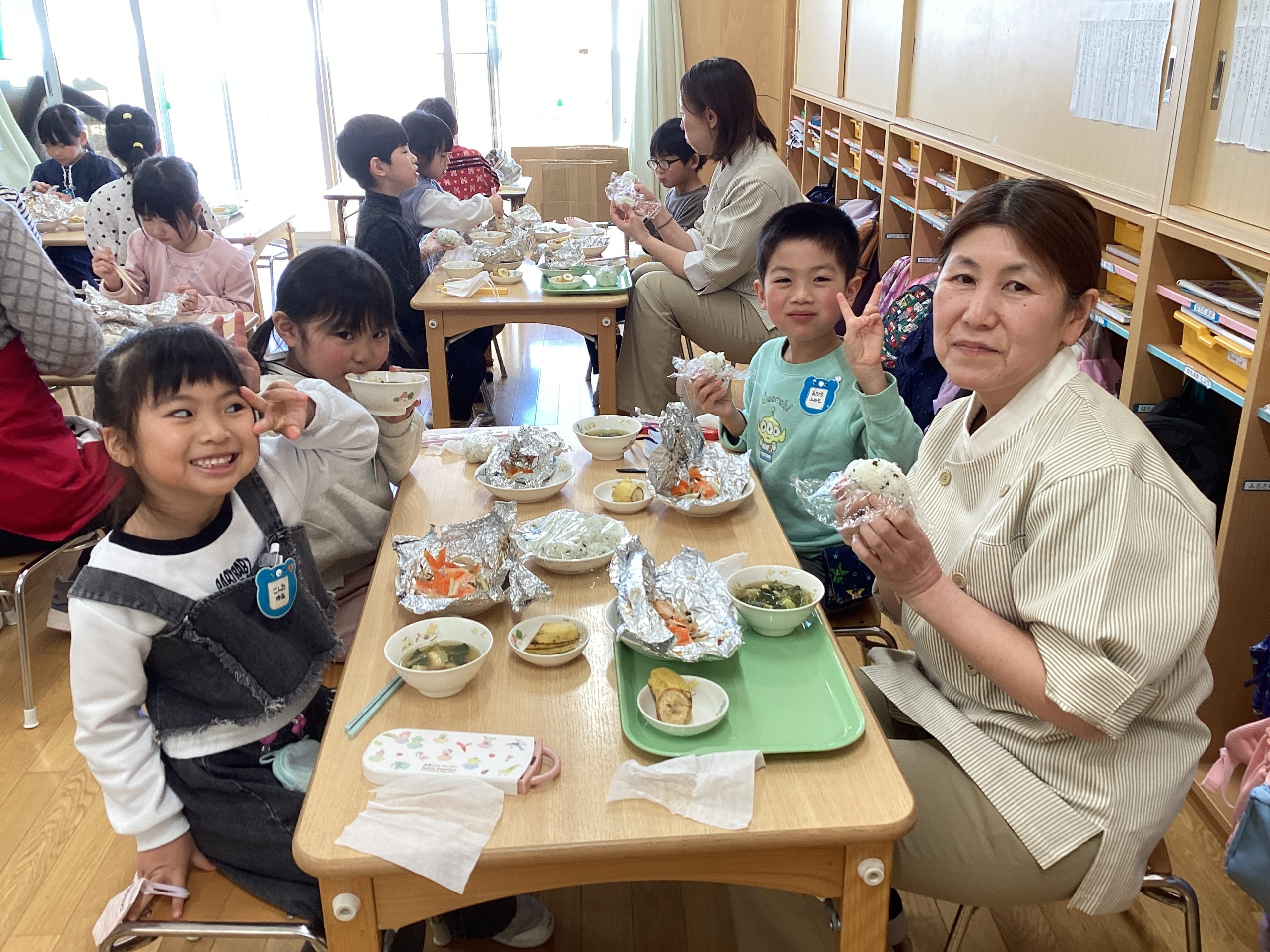 いつも給食を作ってくれている給食先生達をご招待して、一緒にランチタイム♪