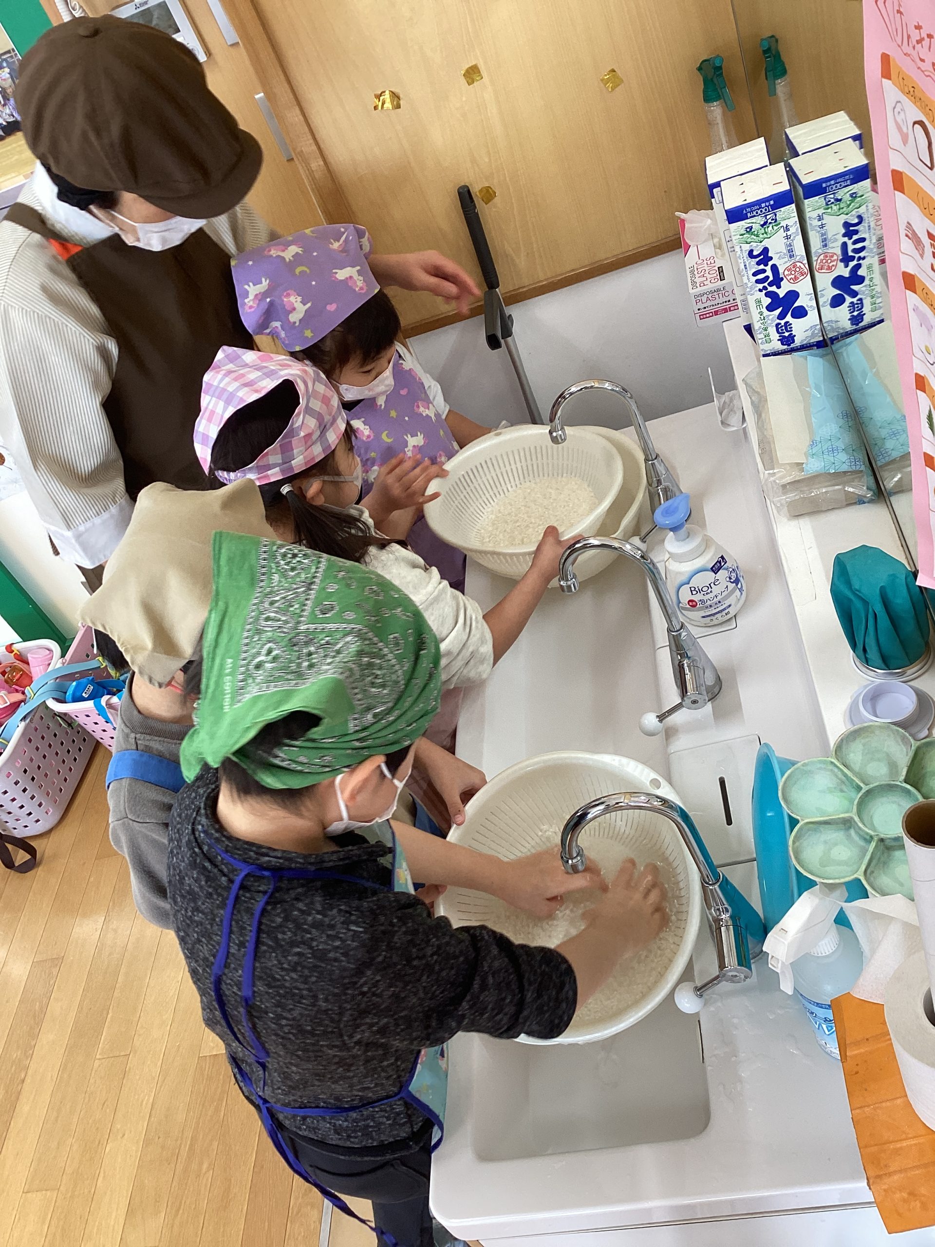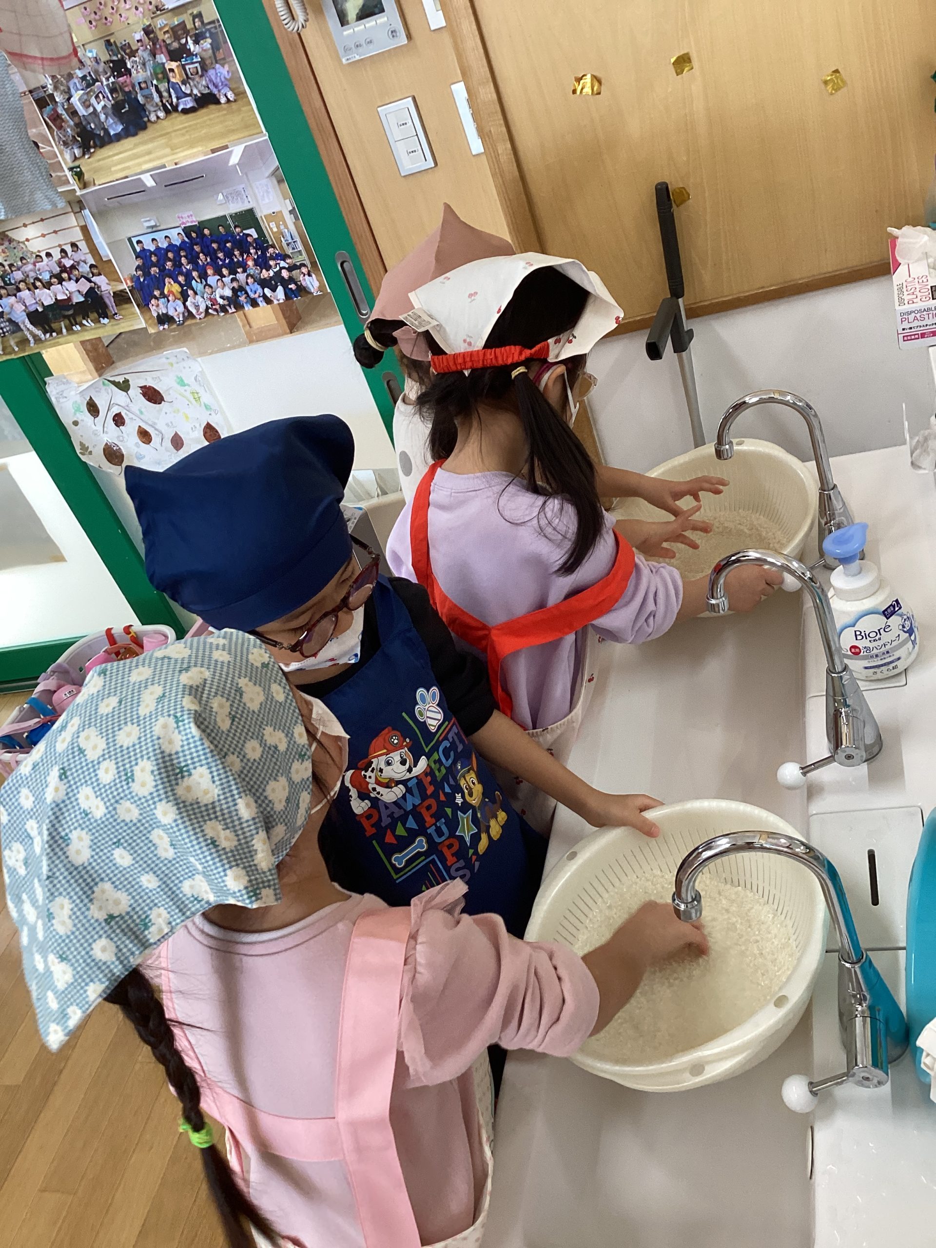 濁った水が、とぐ度に透明になっていく様子を見ながら、お米をきれいにしました。
