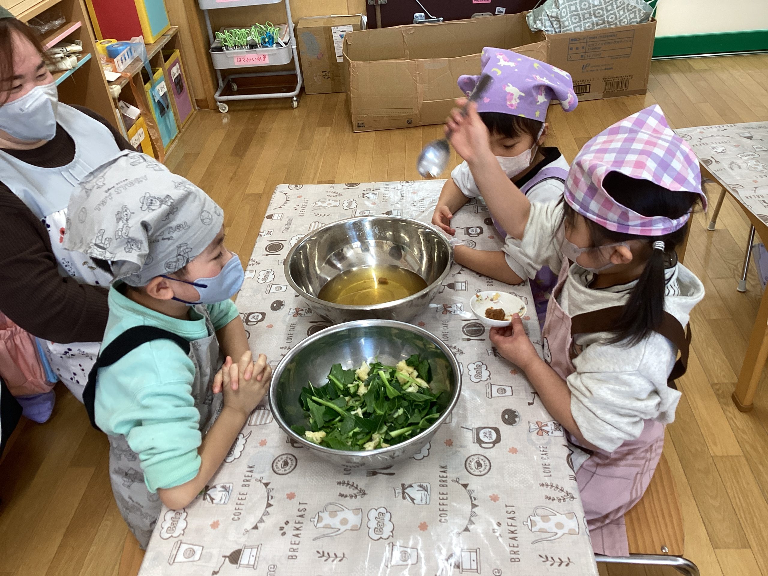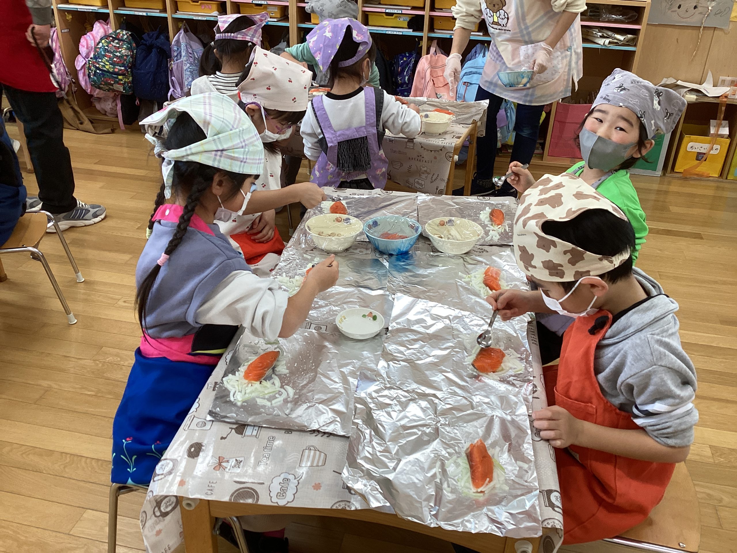 自分達で給食を作りました。(5歳児)