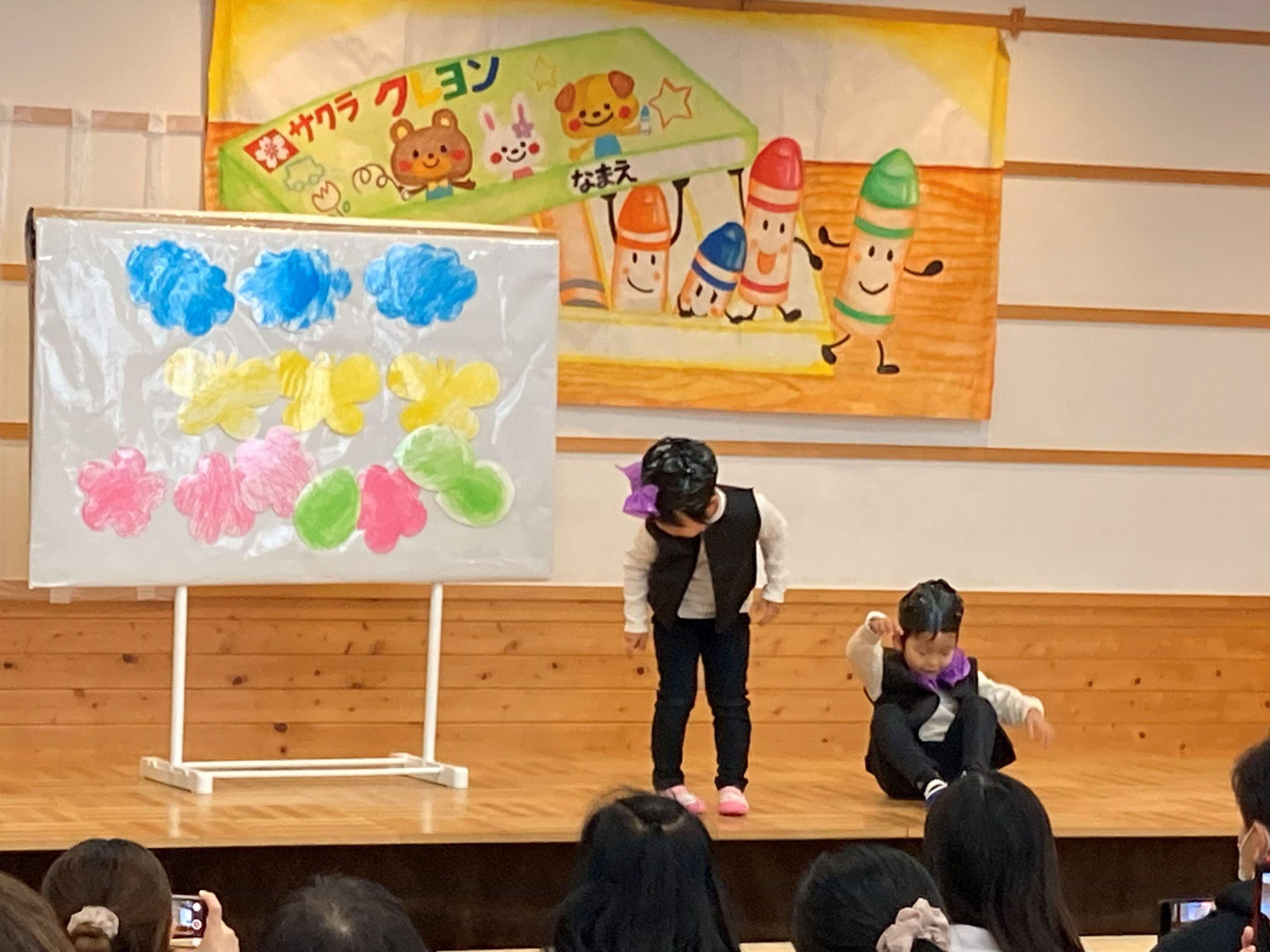 みんなで「どんないろがすき」の歌を歌いました。