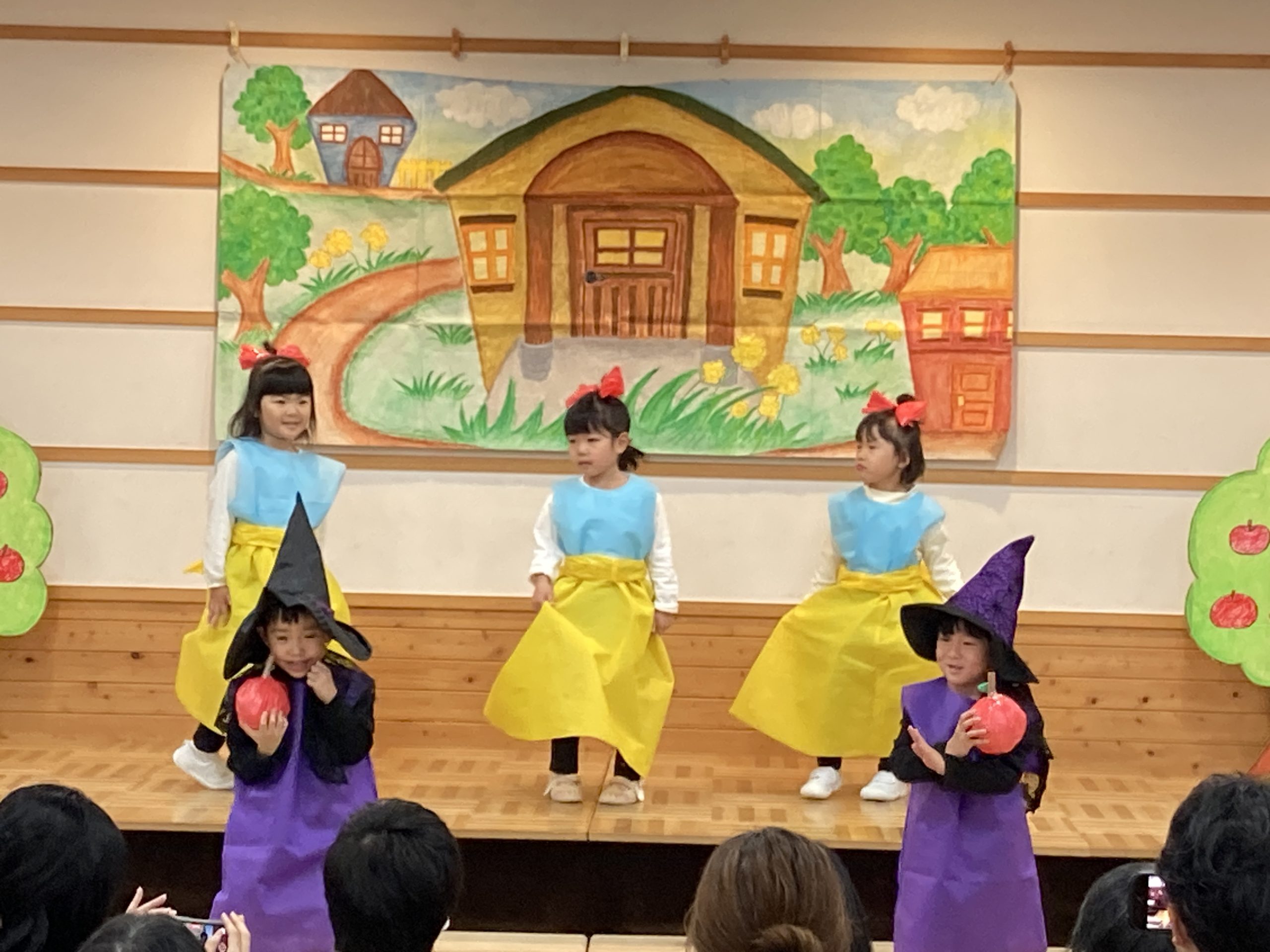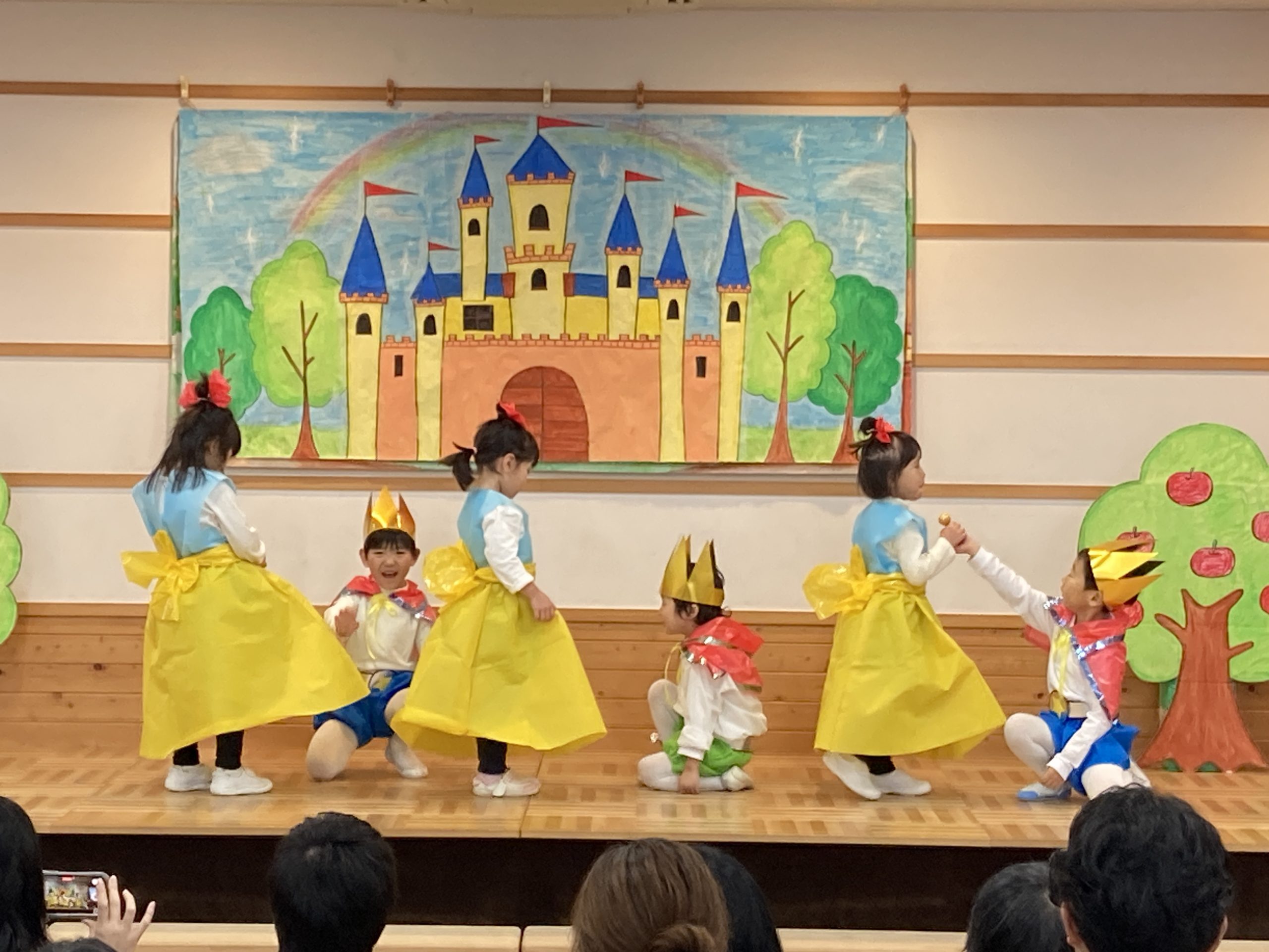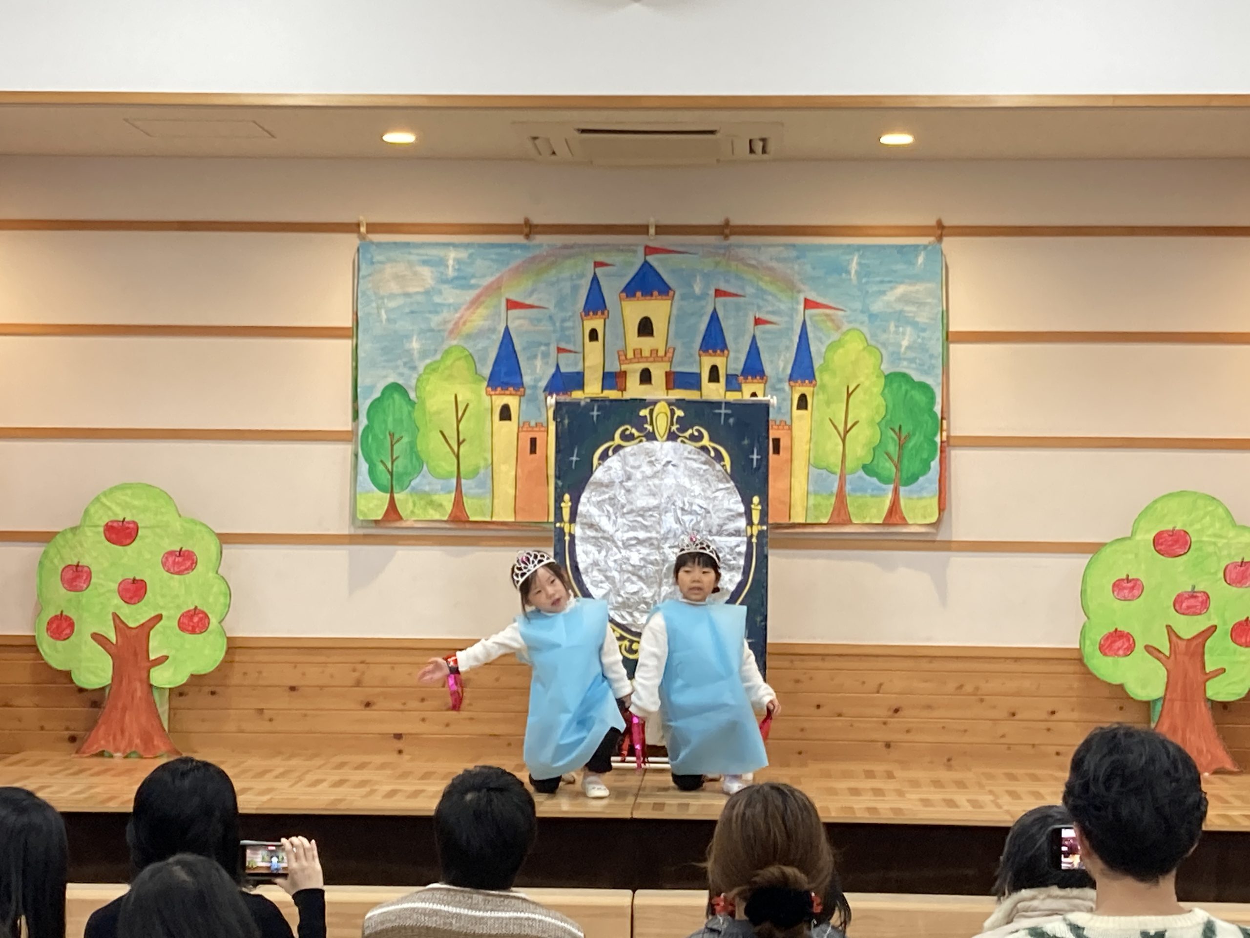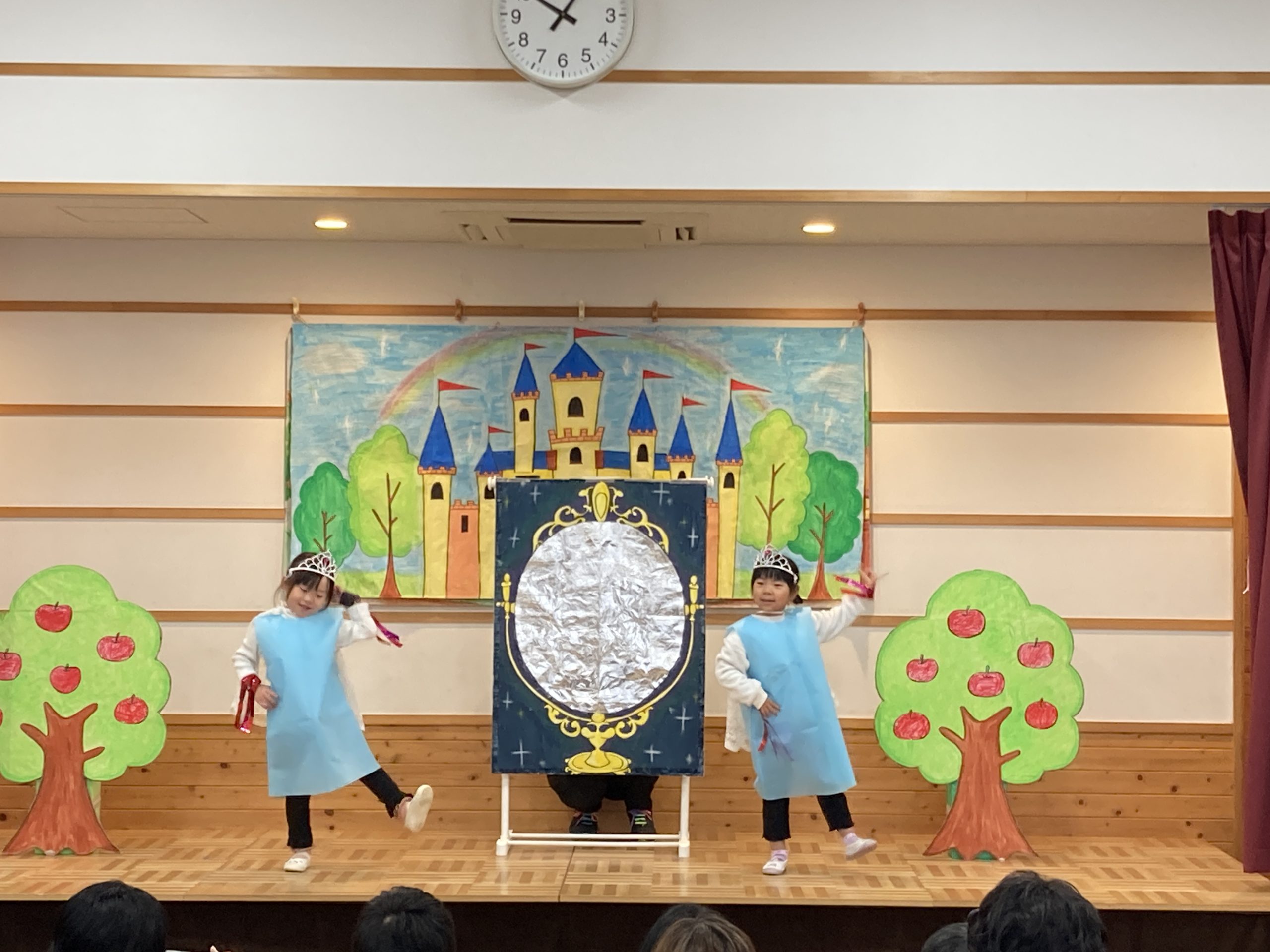 発表会本番まで、子ども達は白雪姫のお話の世界に入り込み、お友だちと「白雪姫ごっこしよう!」と、なりきって遊ぶことを楽しんできました。