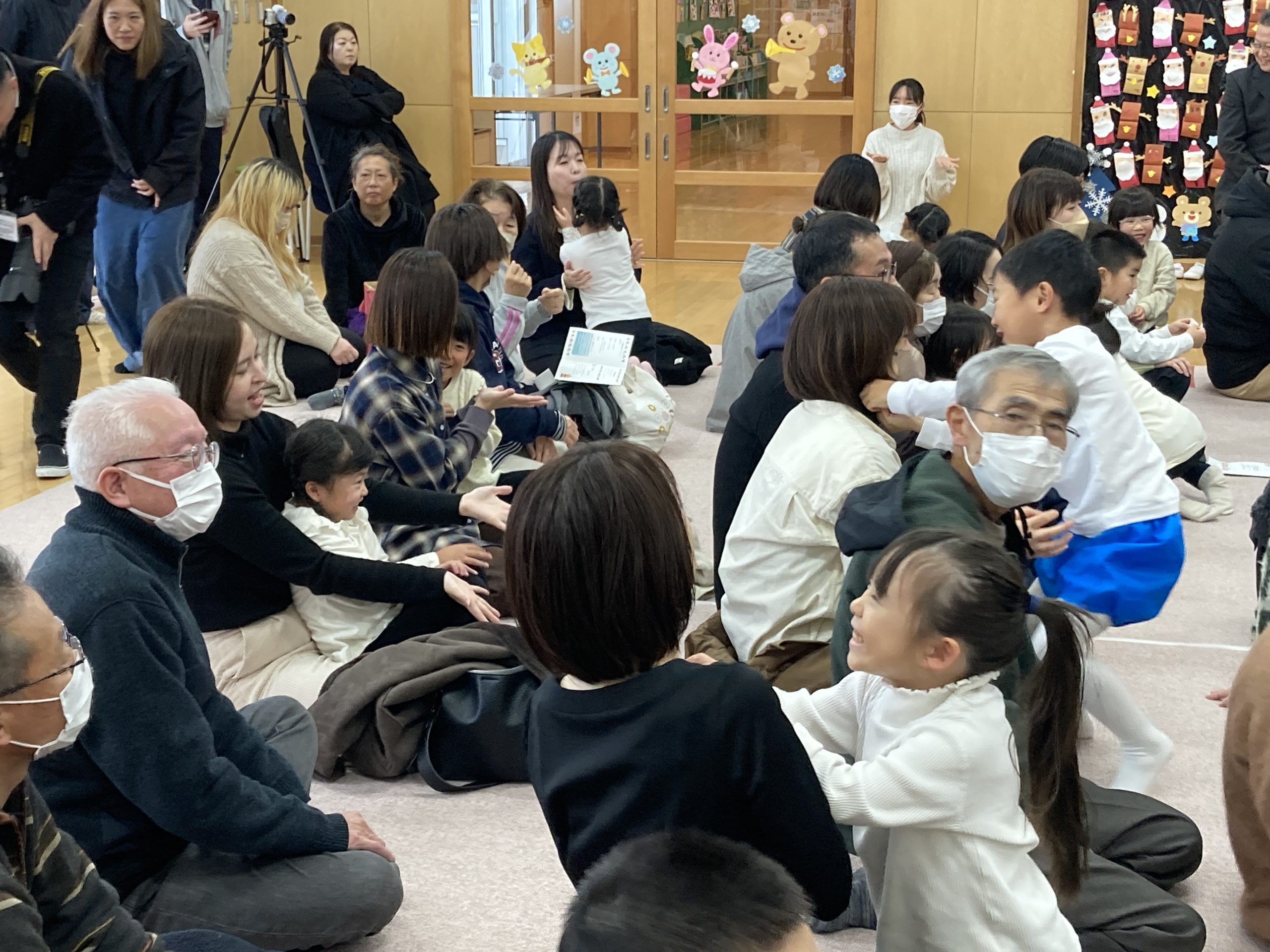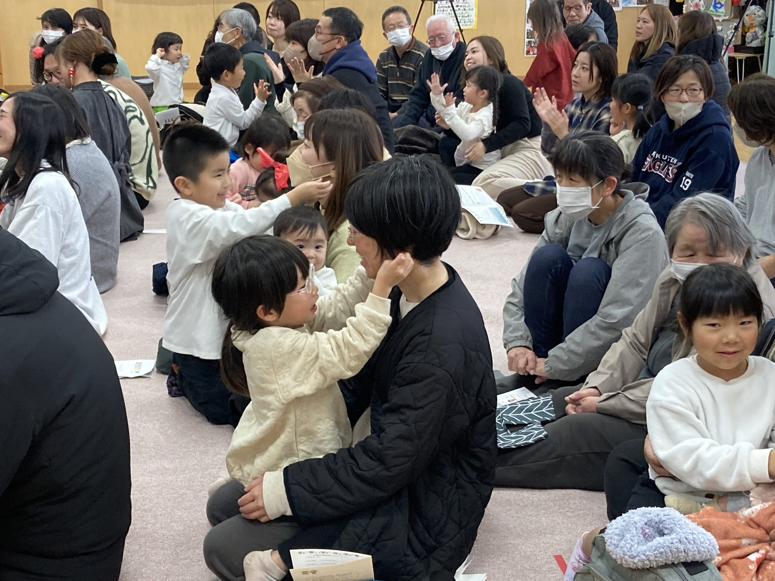 お家の人のほっぺを触ったり、お家の人からほっぺを触ってもらったりして、たくさん触れ合って、ステージ発表での緊張もほぐれ、和やかな雰囲気の中ふれあいを楽しんでいました。