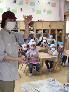 13日(金)年中児組のおともだちが初めてのクッキングを行ないました。