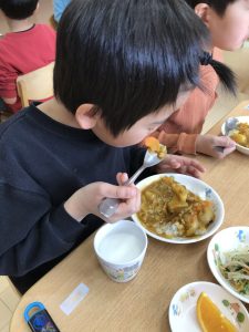 年少児組さんも年長児組さんも作ったカレーを食べてくれてありがとう♡