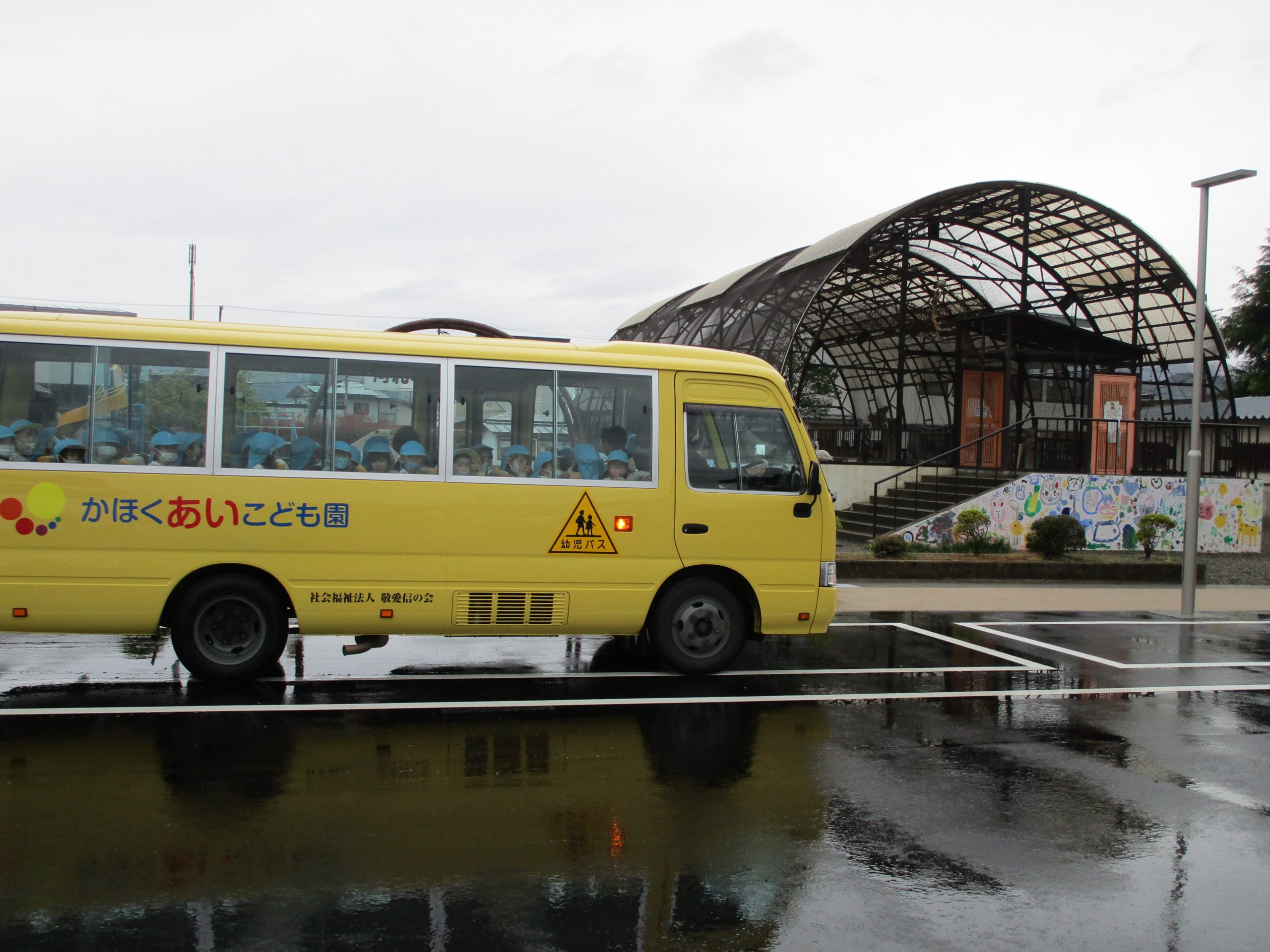 そして、園に到着。45分くらいのプチ遠足、車窓からはいつも行くお店や知っている場所が見えて、これもまた楽しかったようです。