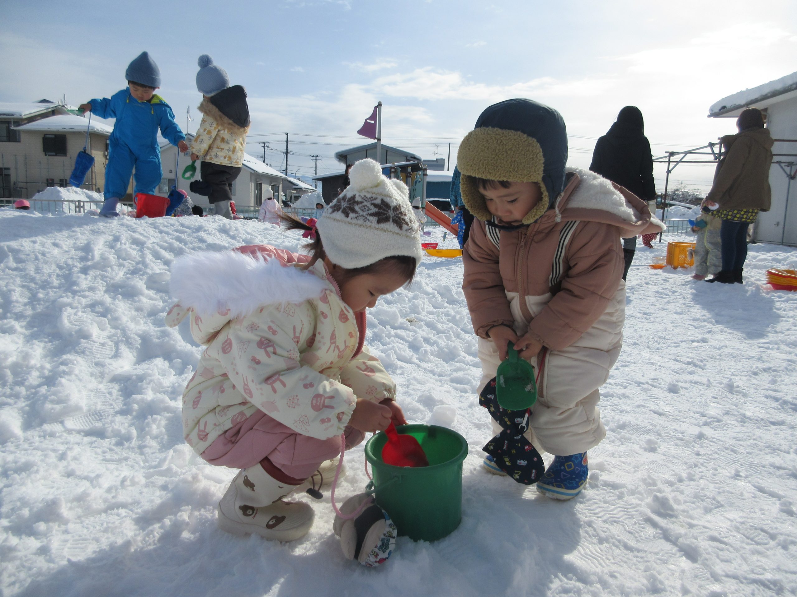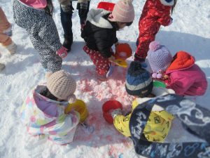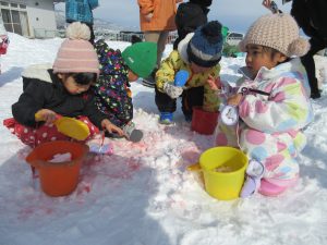 お天気が良い日に、ちびっこ広場で、雪遊びをしました!