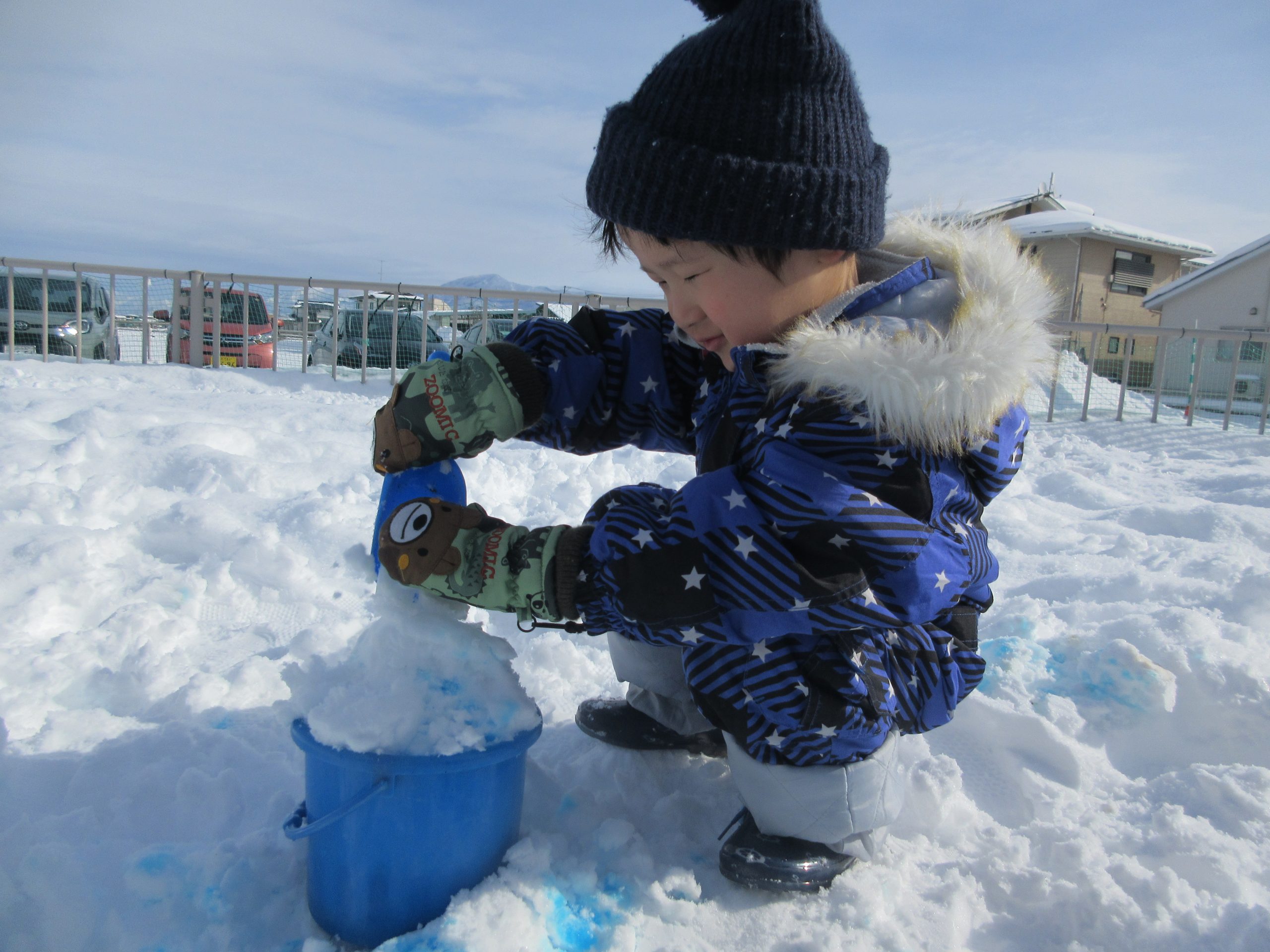 バケツに雪を入れて~