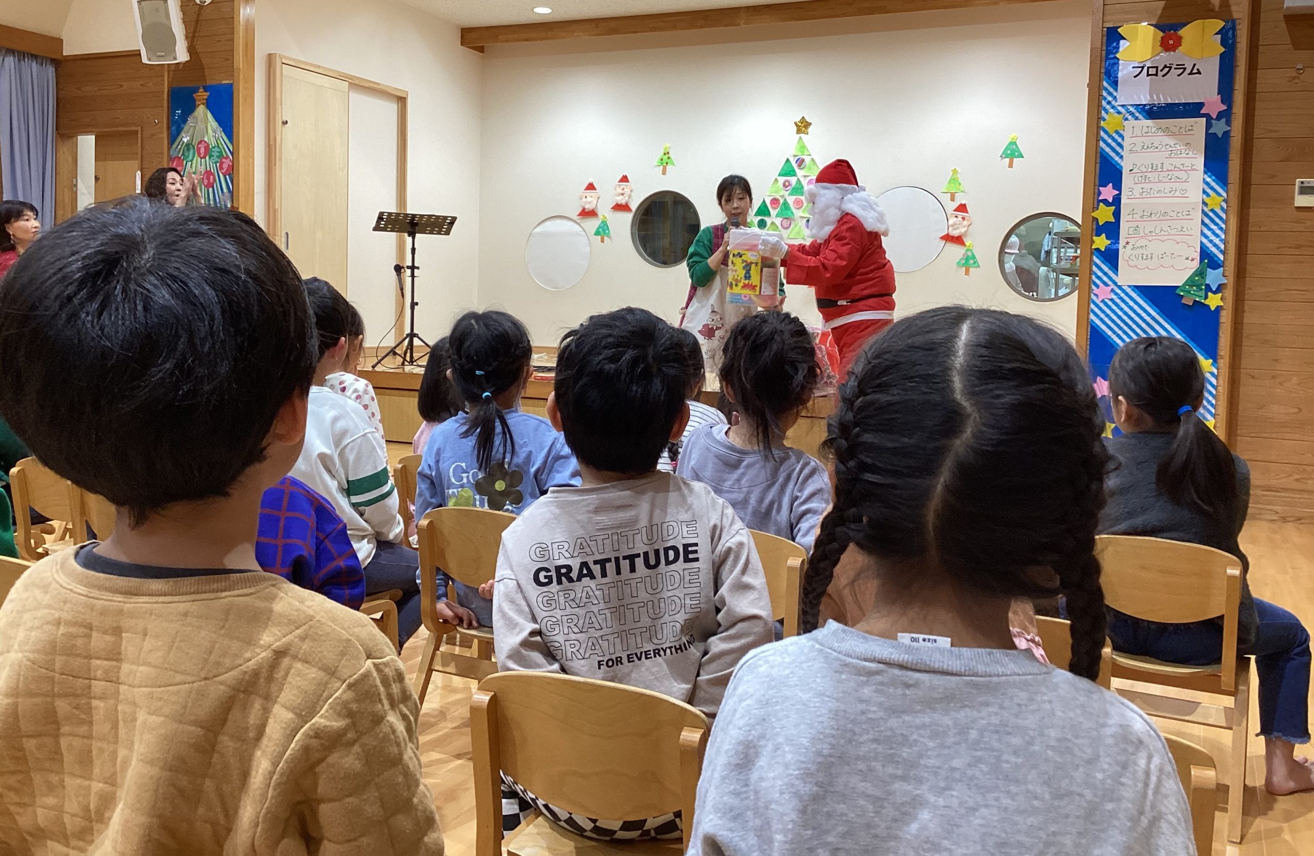 大きな袋の中からプレゼントが出てくると、どんなおもちゃが出てくるのか、ワクワクしながら見ている子ども達。遊ぶのを楽しみにしているようでした。