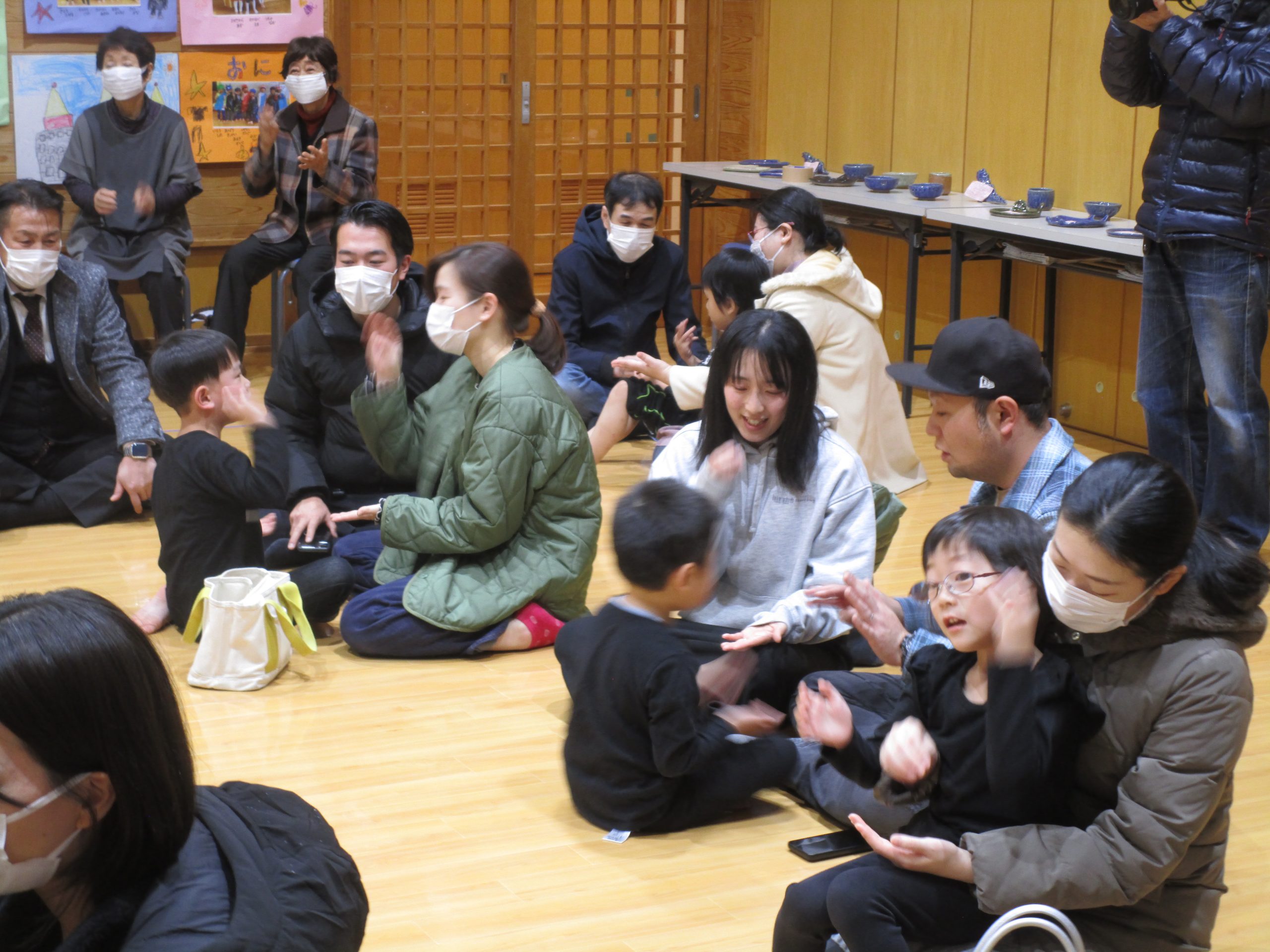 ステージ発表後は、お家の人にも踊りを教えながら一緒に楽しみました。子ども達はもちろん、お家の人もにこにこでした。
