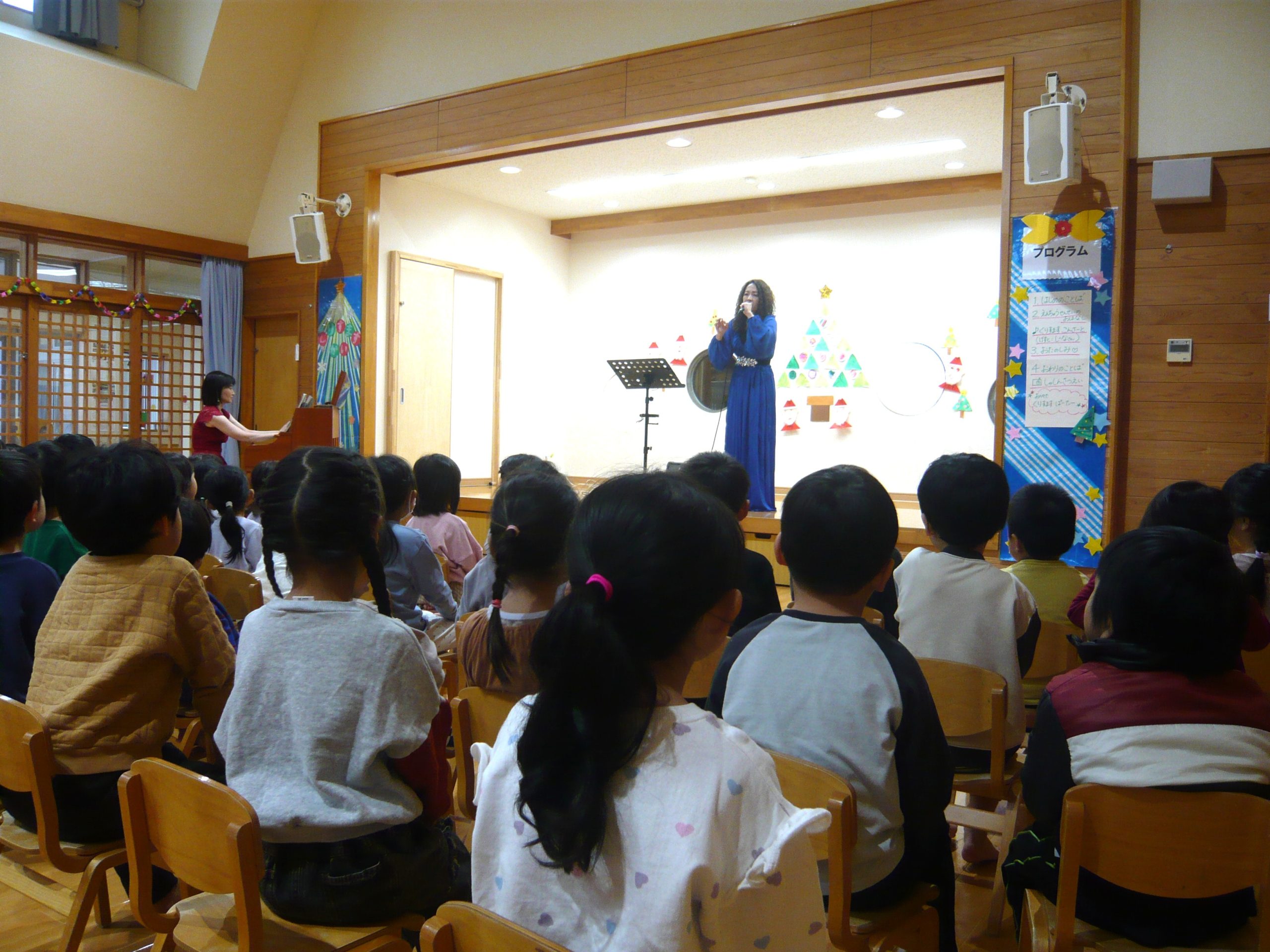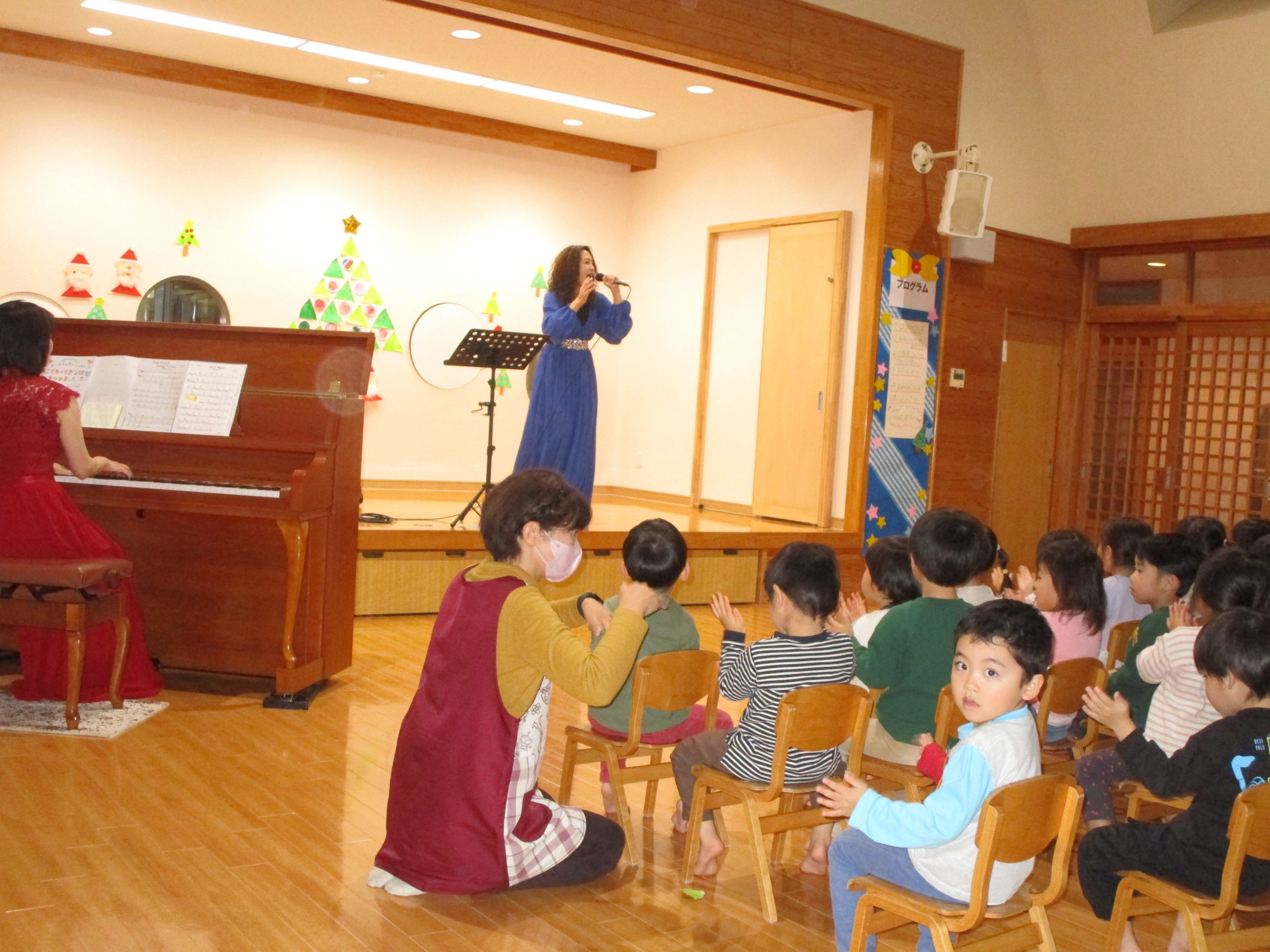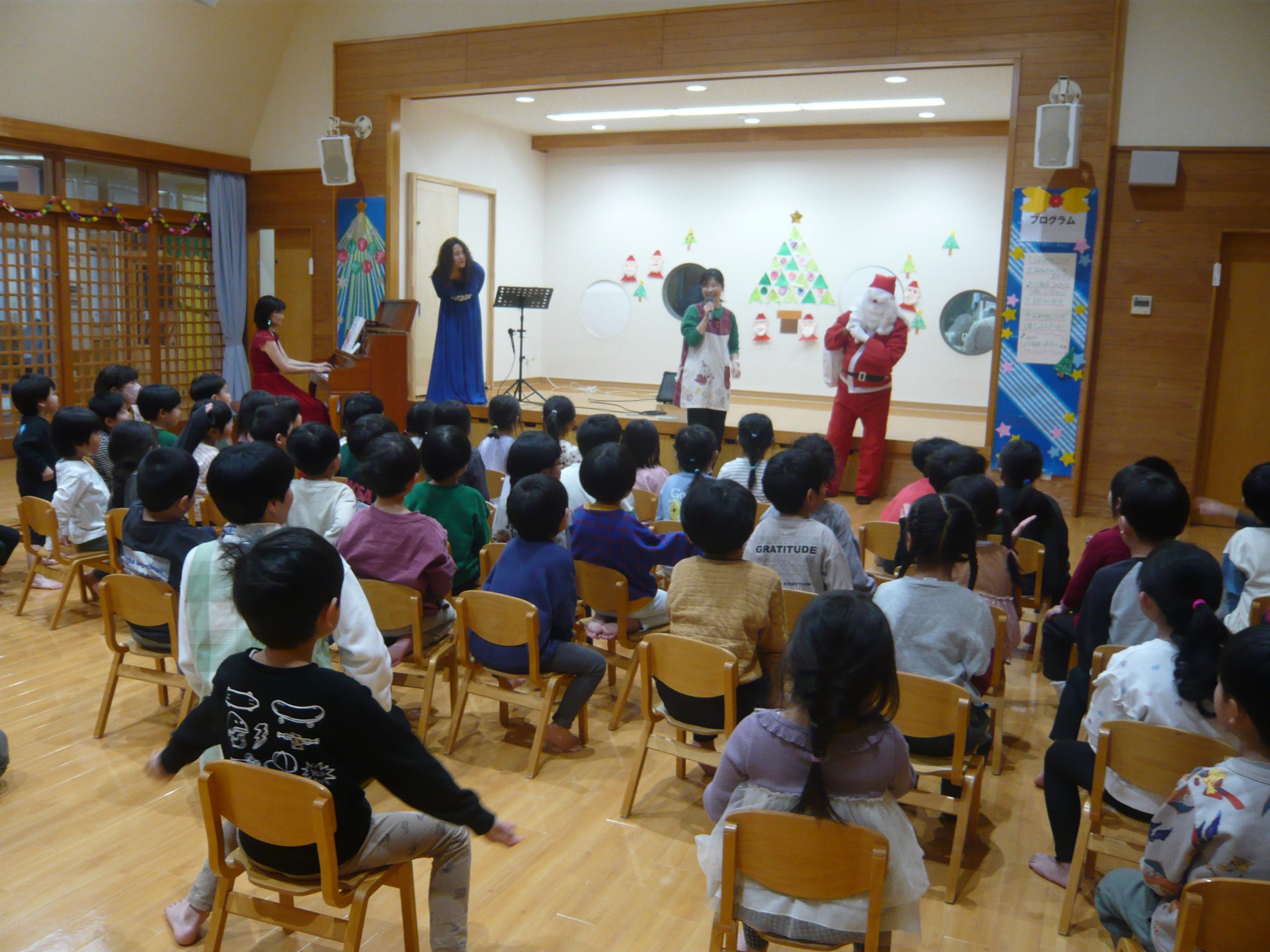 12月25日(木)、ジャズシンガーとピアニストをお呼びしてクリスマスコンサートを行いました。伸びやかな歌声と素敵なピアノの音色が子ども達の心に響き、手拍子をとったり、歌ったりして楽しみました。