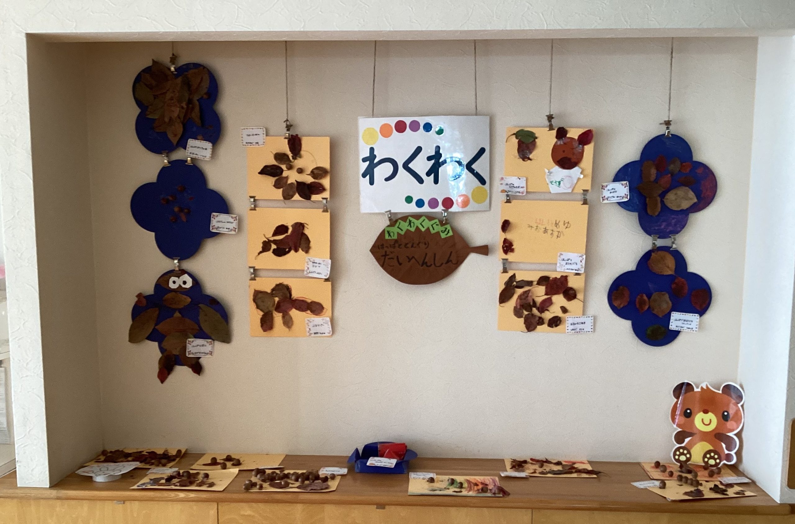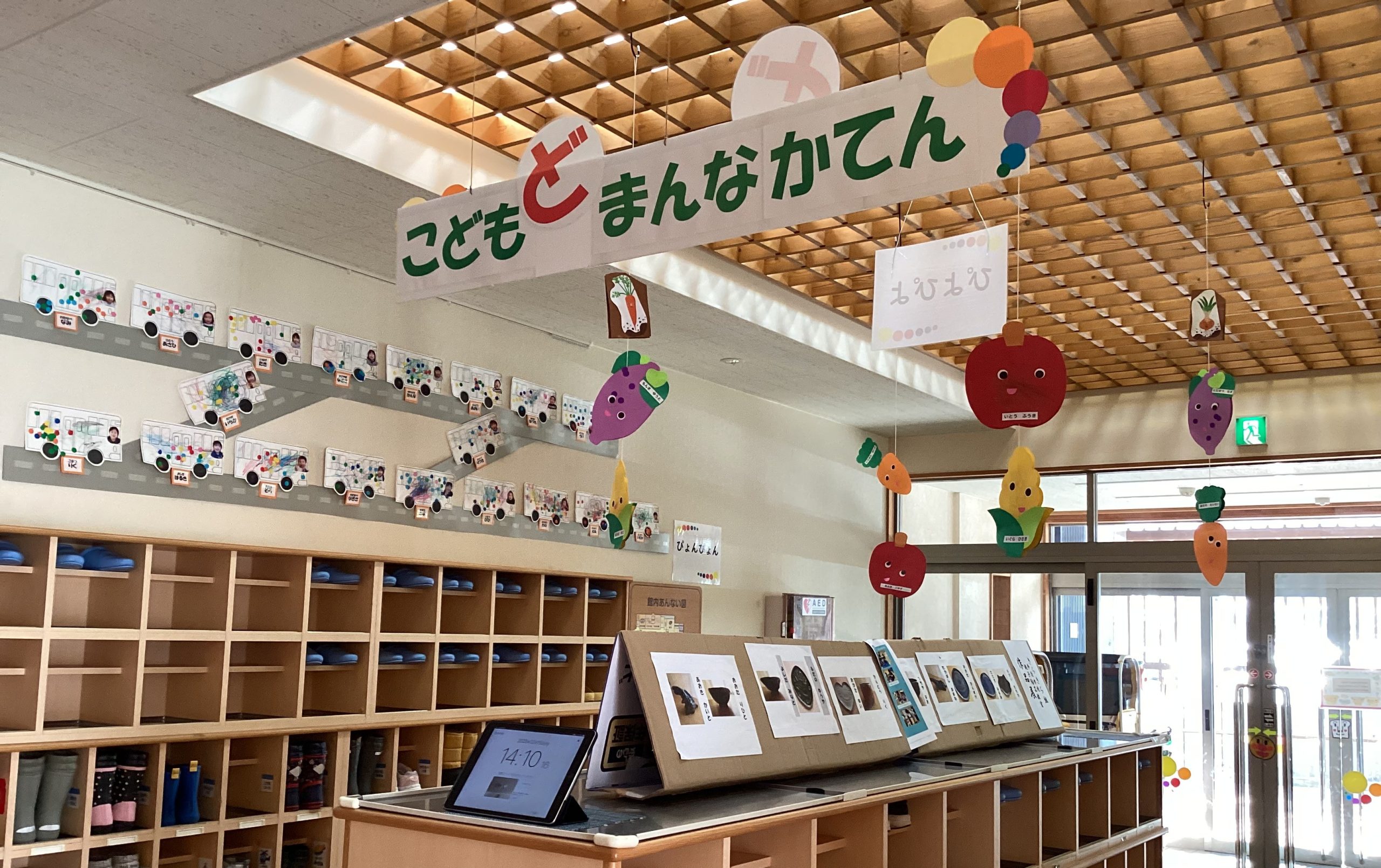 玄関や廊下には、全園児の作品が飾られ、お客さんをお出迎えです。