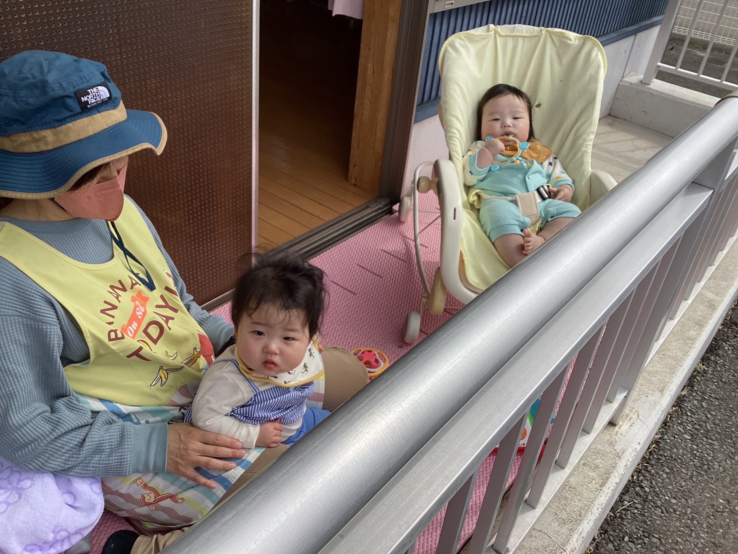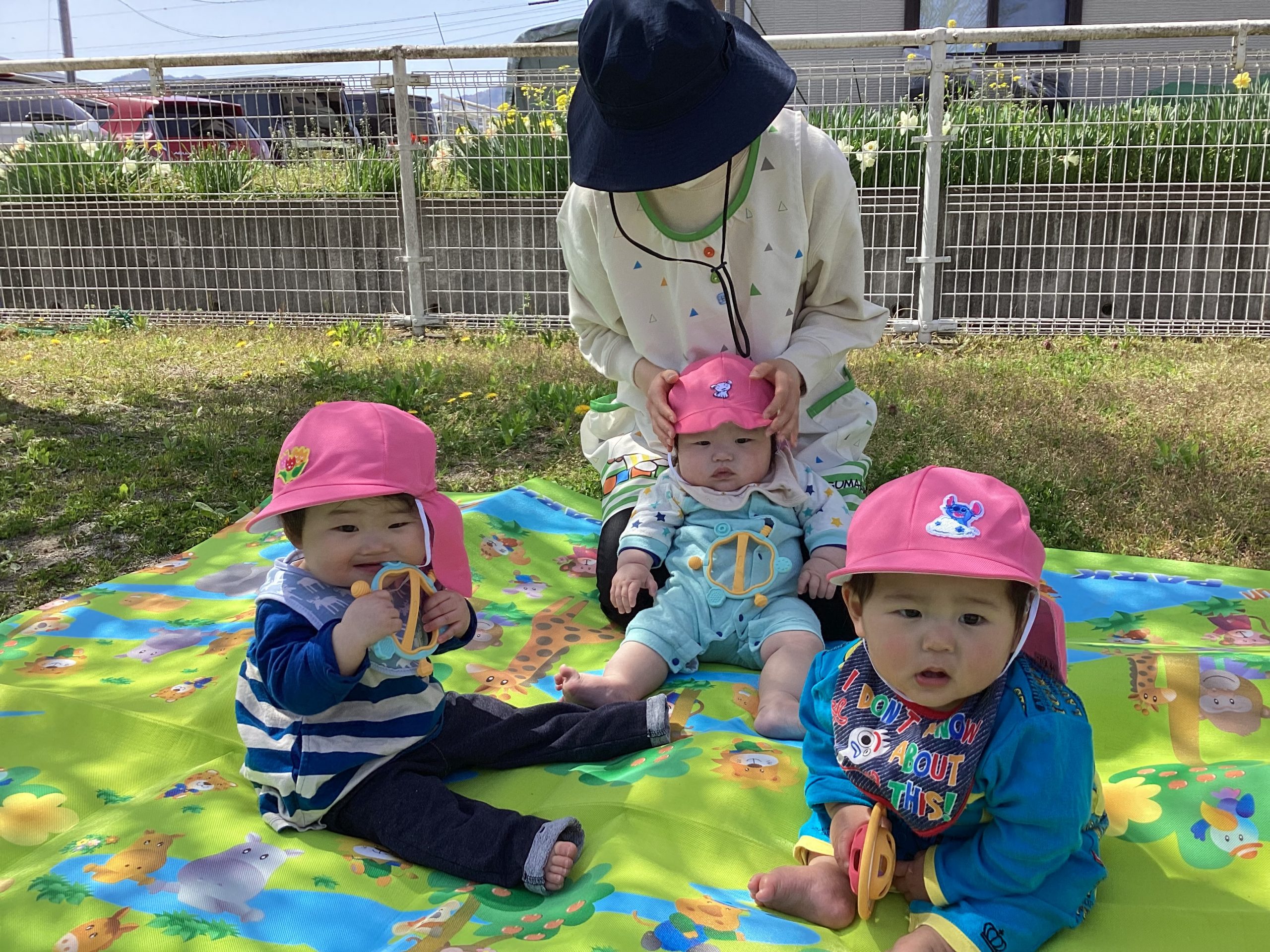 一番小さい赤ちゃんのお友だちも、少しずつ保育園のリズムに慣れてきました。おもちゃで遊んだり、外気浴やお散歩を楽しんだりと、周りのお兄ちゃんお姉ちゃんの声を聞きながら、ゆったりすごしています