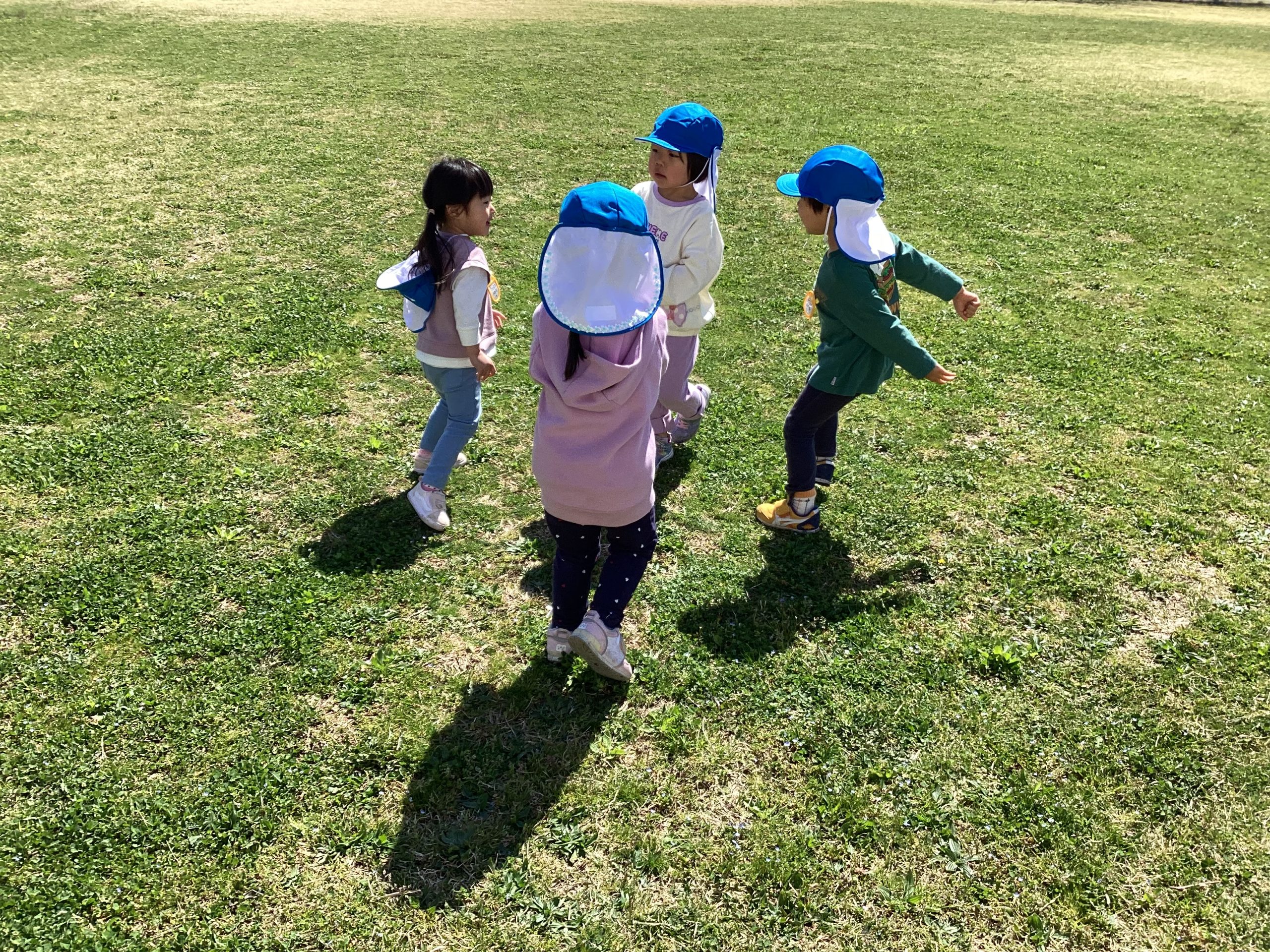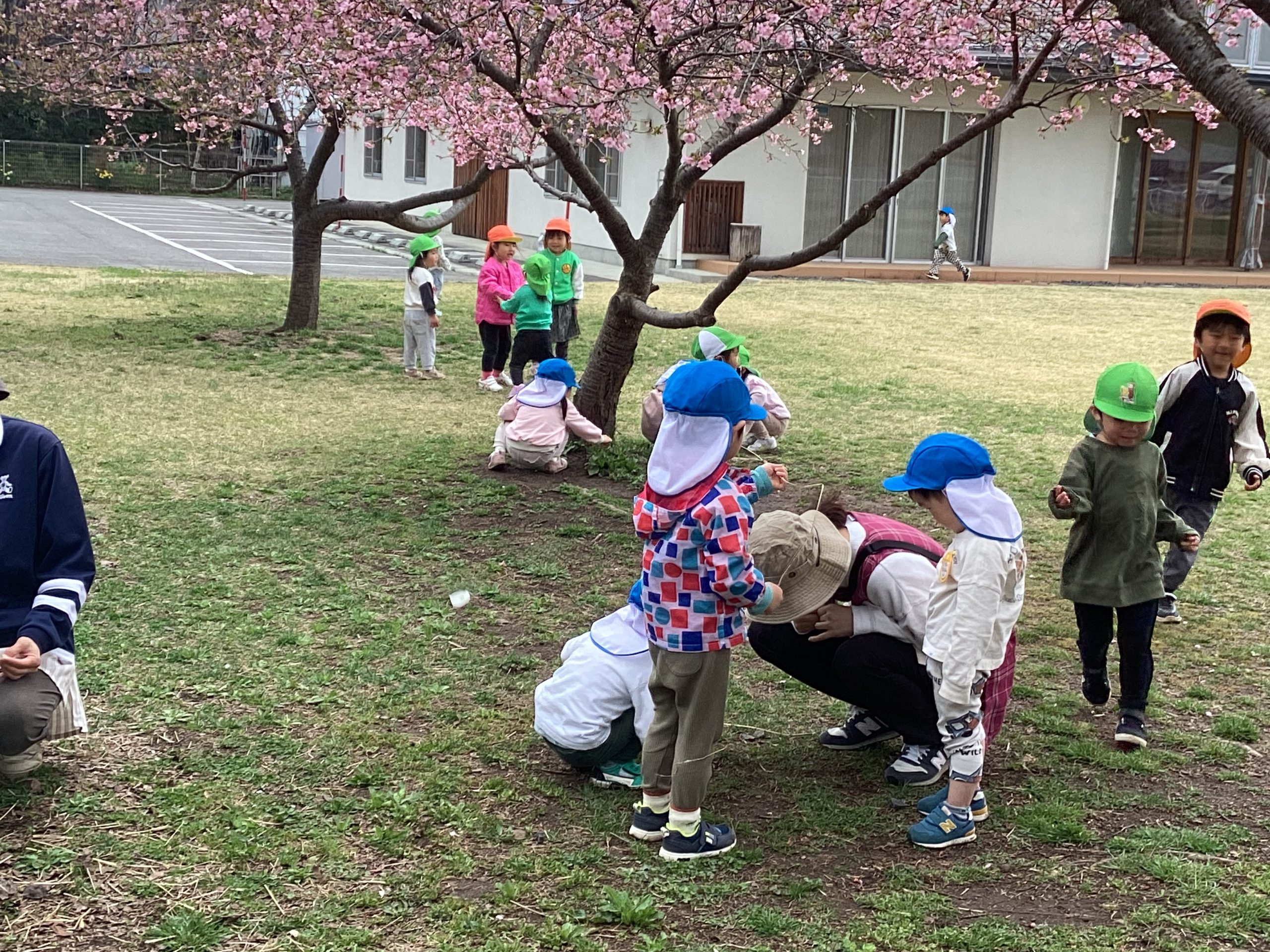 お外では、満開の桜の木の下で思い思いの春を見つけたり、異年齢交流の中で遊びが広がっています。