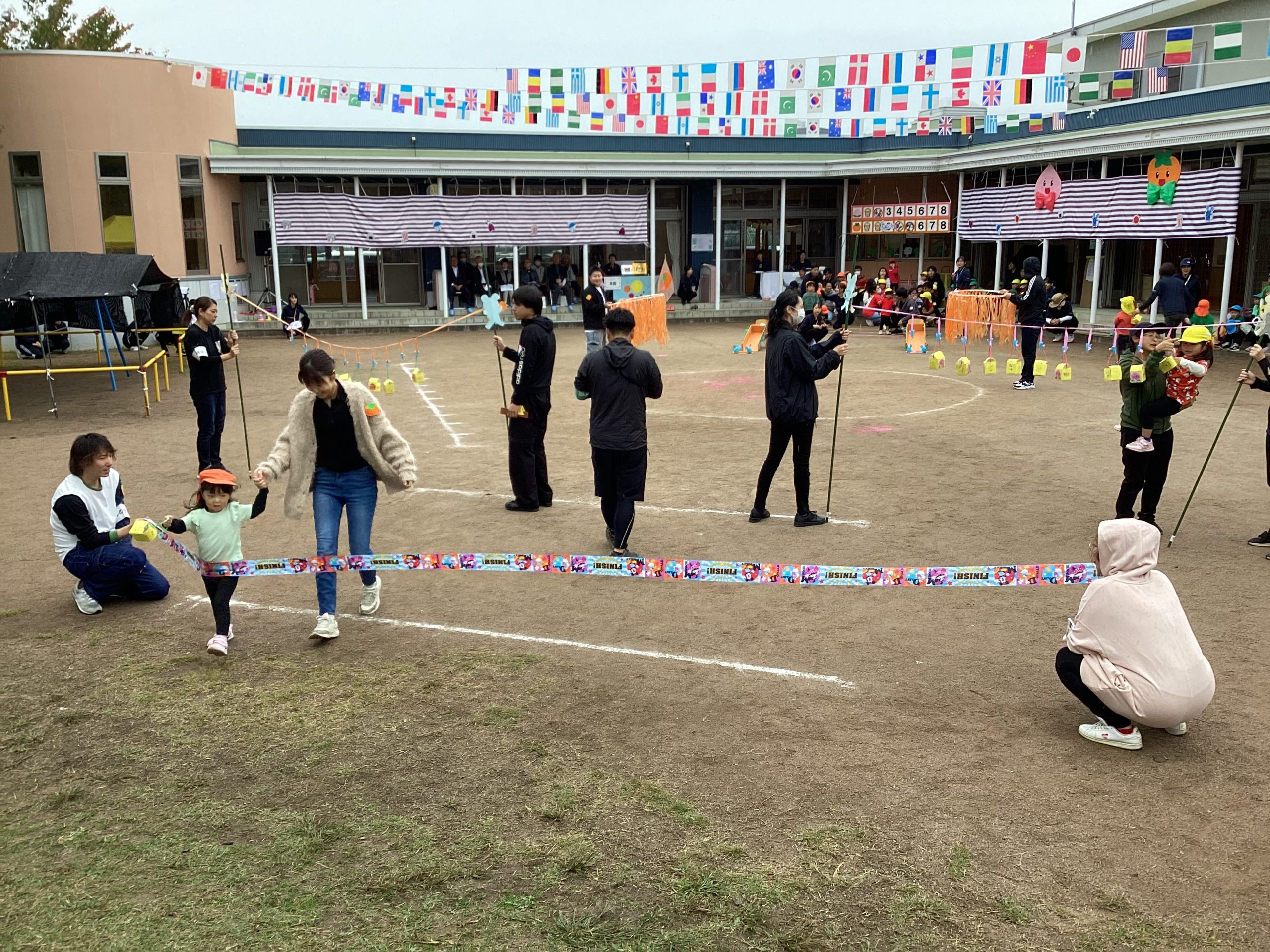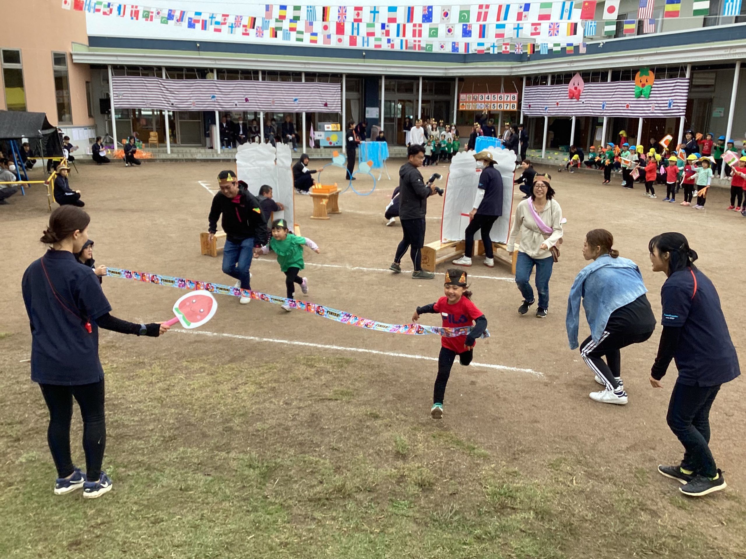 最後は年長組の親子リレーで競技は終了しました。閉会のセレモニーはゆうぎ室で行いましたが、競技を最後までやり切った子どもたちの表情は晴れ晴れでした。