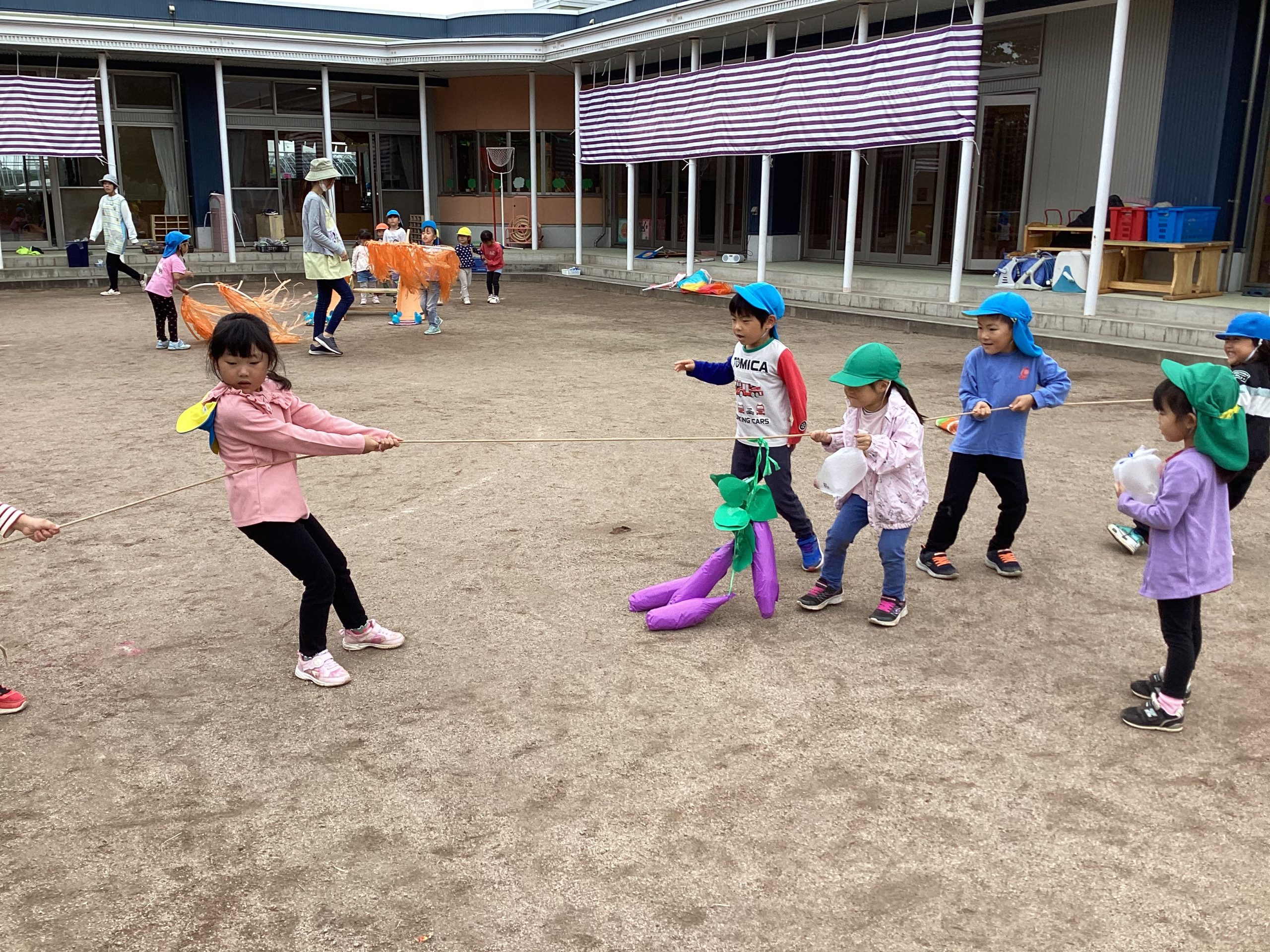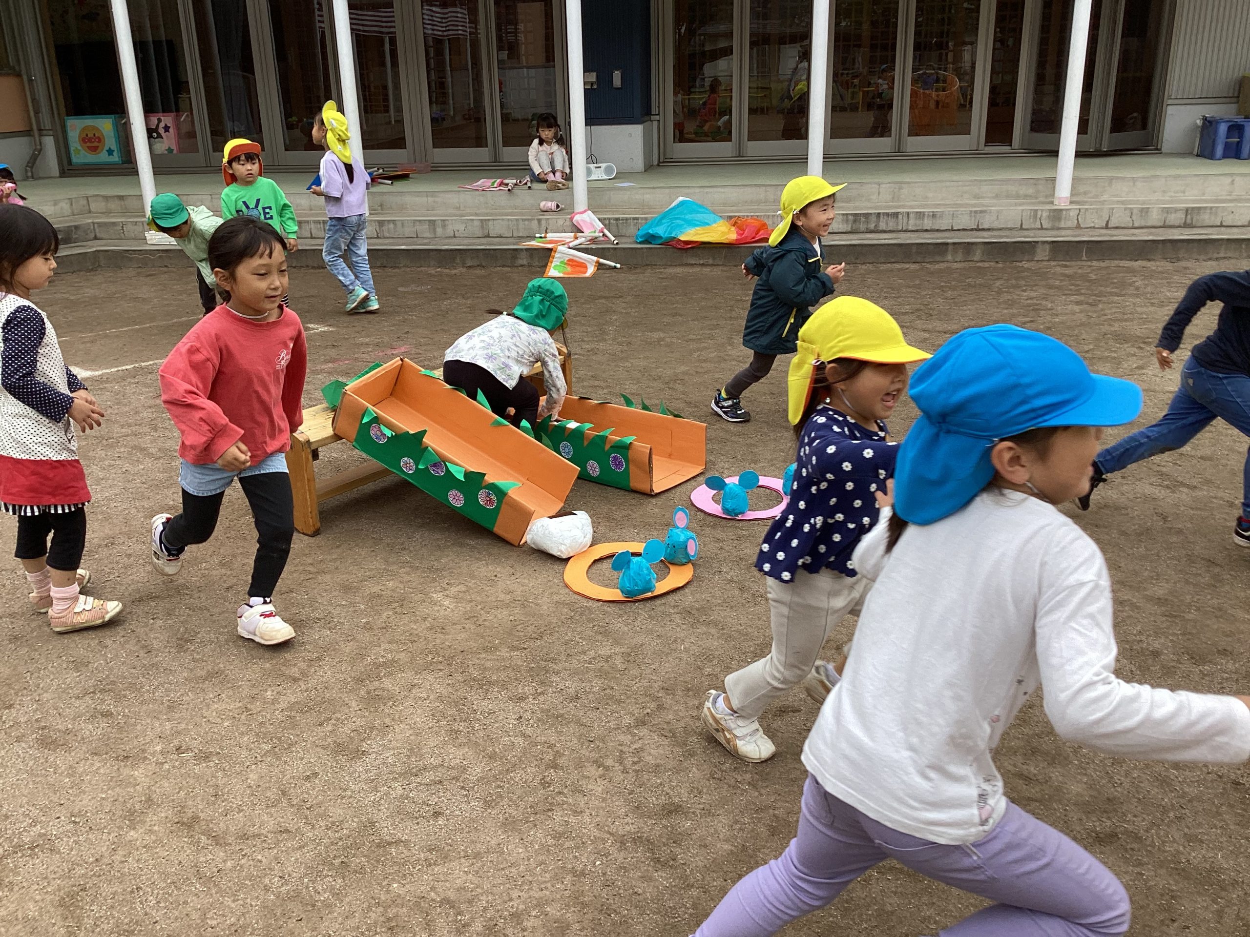 運動会のごっこ遊びが連日続いています。楽しかったから繰り返す子どもたち。友達と再現し、また楽しさを共有し、そして、来年の運動会に期待を膨らませていく子どもたちです。