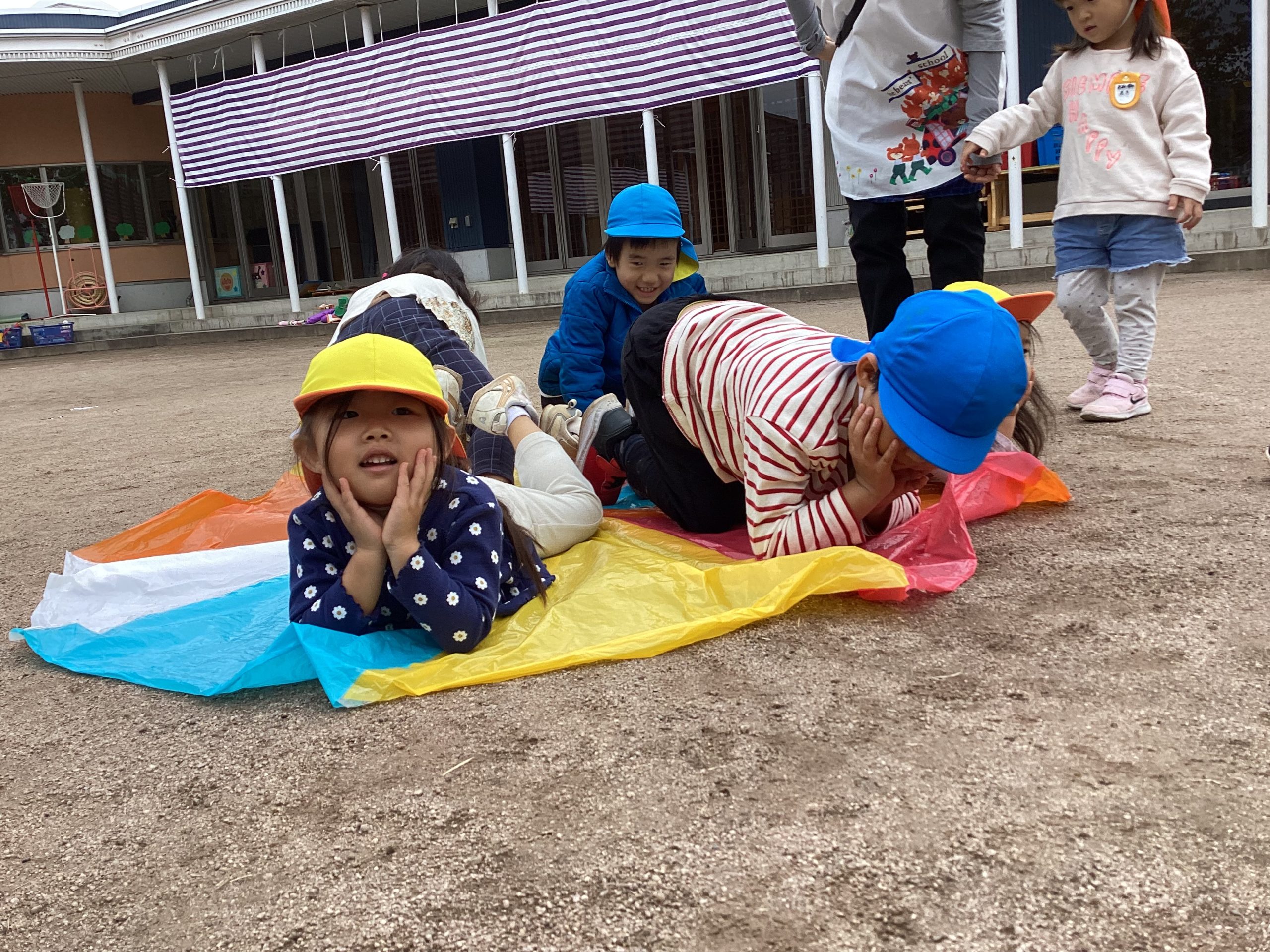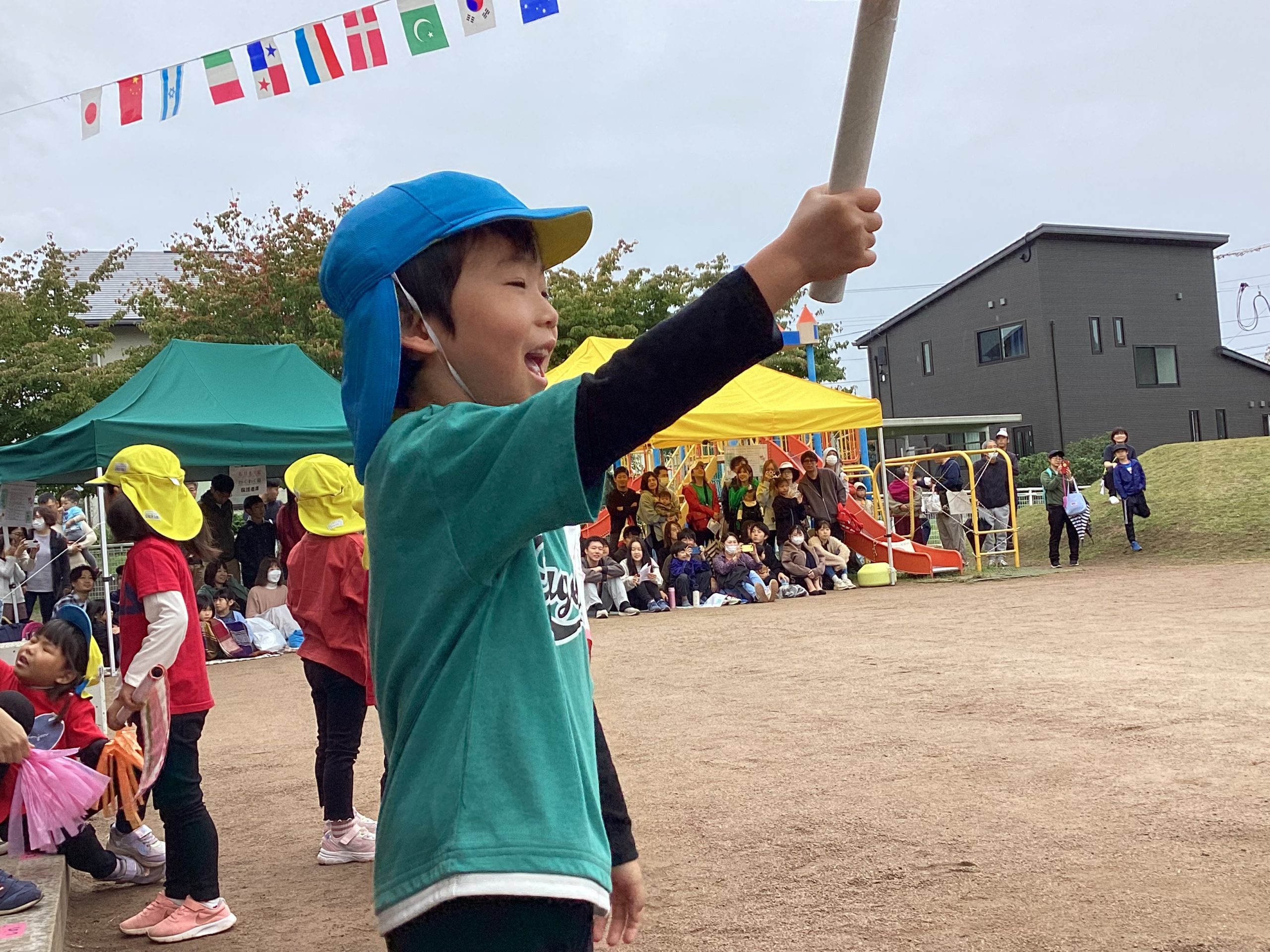 親子や友達と経験した運動会! 天候は秋晴れとはいきませんでしたが、楽しかった思いが溢れて「今日もやろうよ!」 「つぎは、おむすびころりんしたい!」 「バルーンしたい!!」