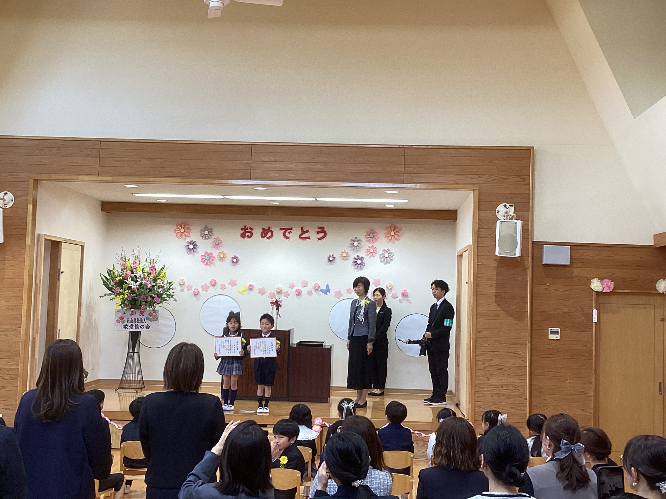 「私は小学校にいったら、給食をいっぱいたべて、いろいろがんばります!」素直な気持ちの発表に、会場には笑顔の花が満開になりました。