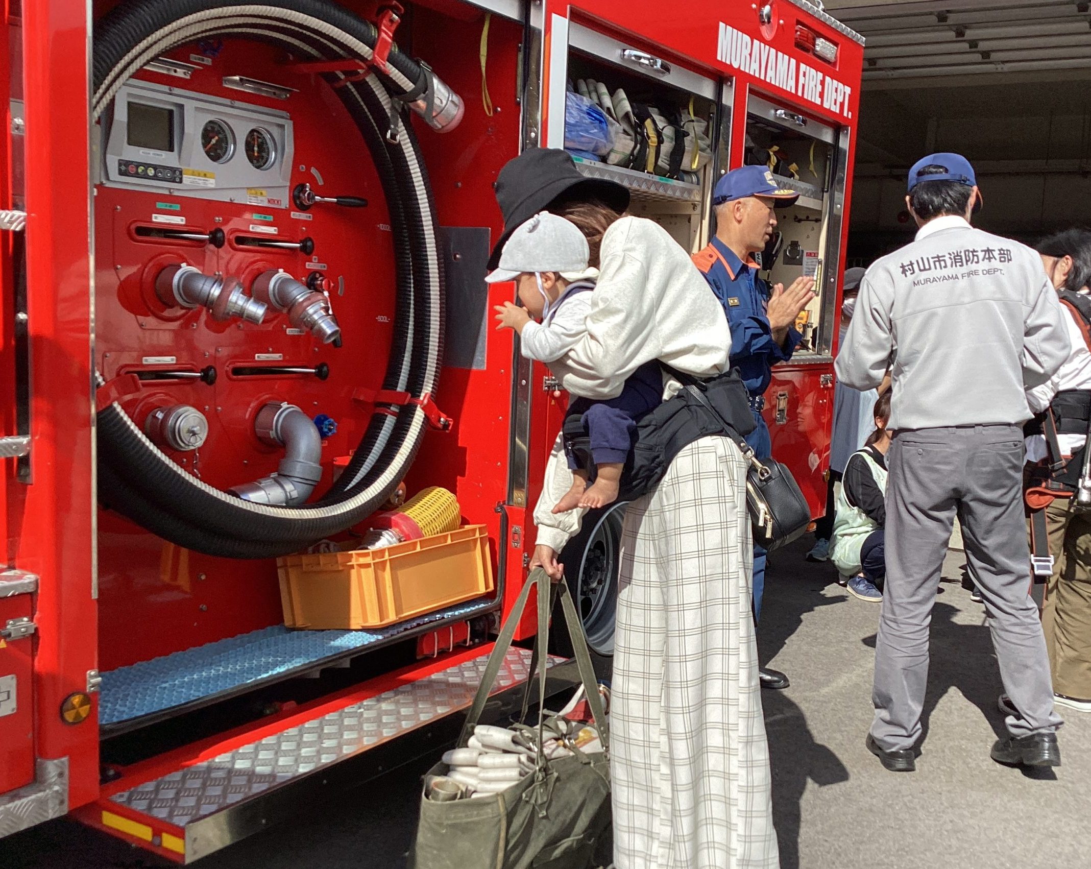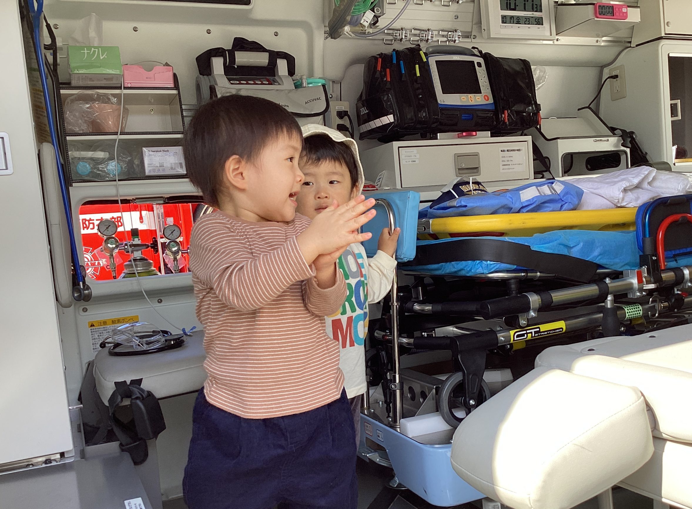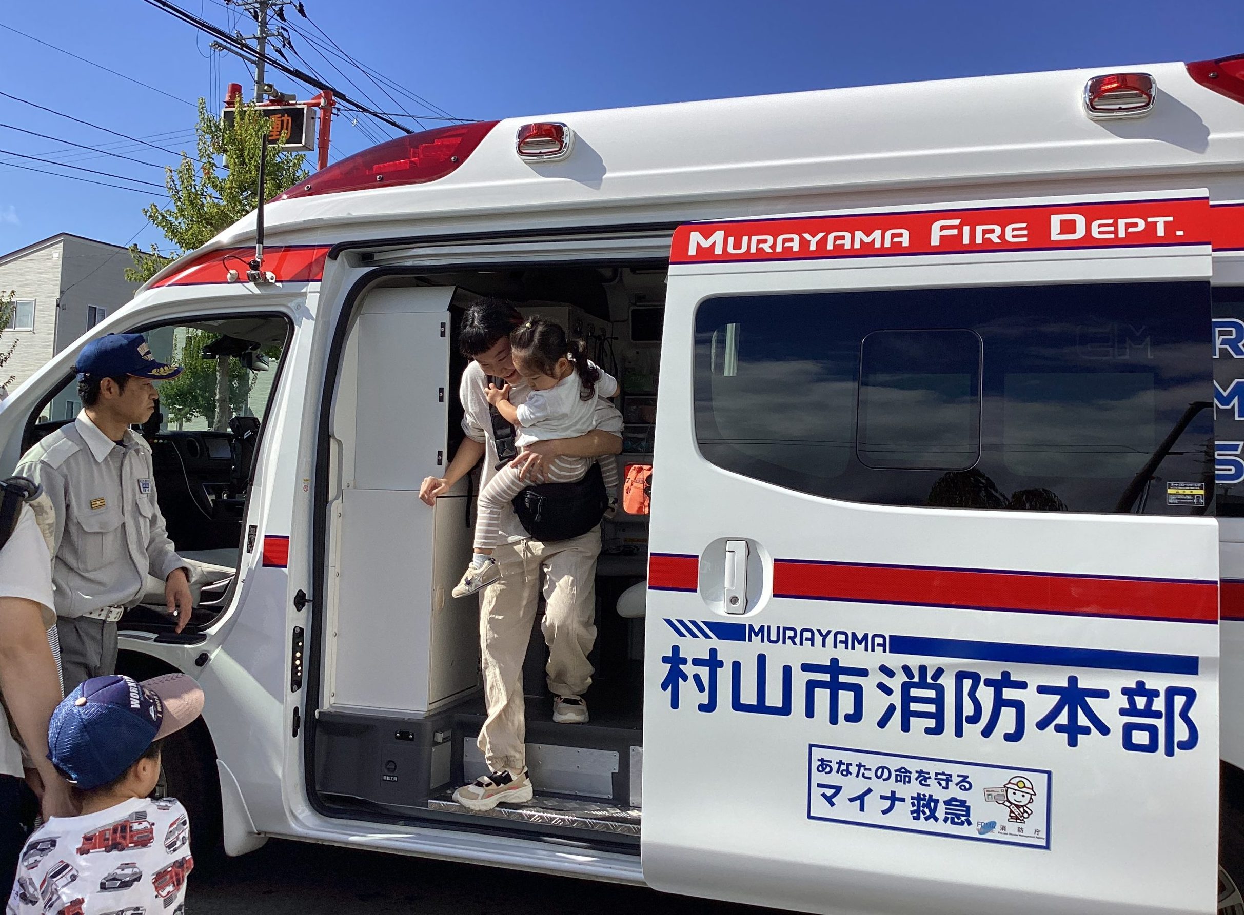 大好きな救急車や消防車の姿に、小さな子どもたちは目をきらきらさせて大興奮でした。ミニカーや図鑑をもっている子もたくさんいるかもしれませんが、本物はとても大きくて驚きましたね。