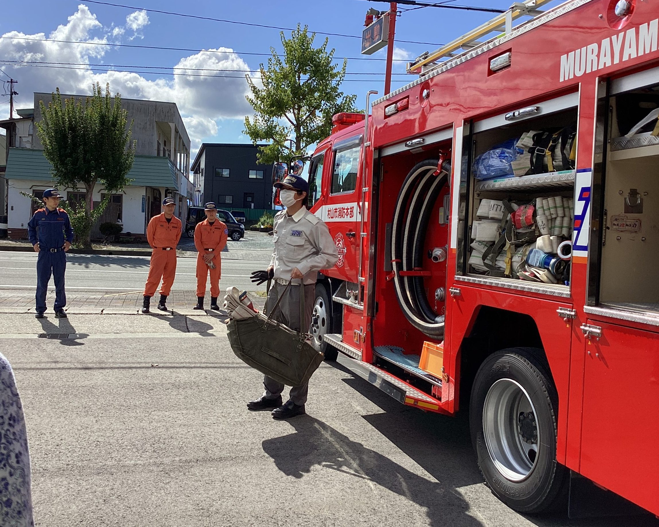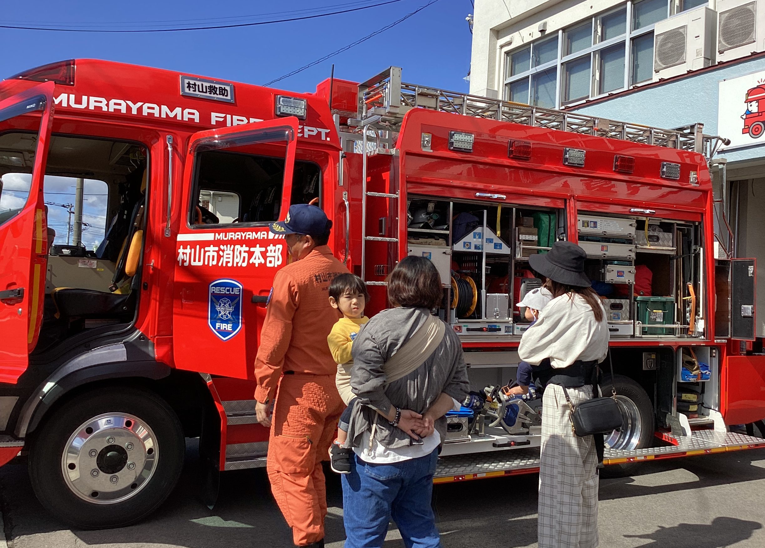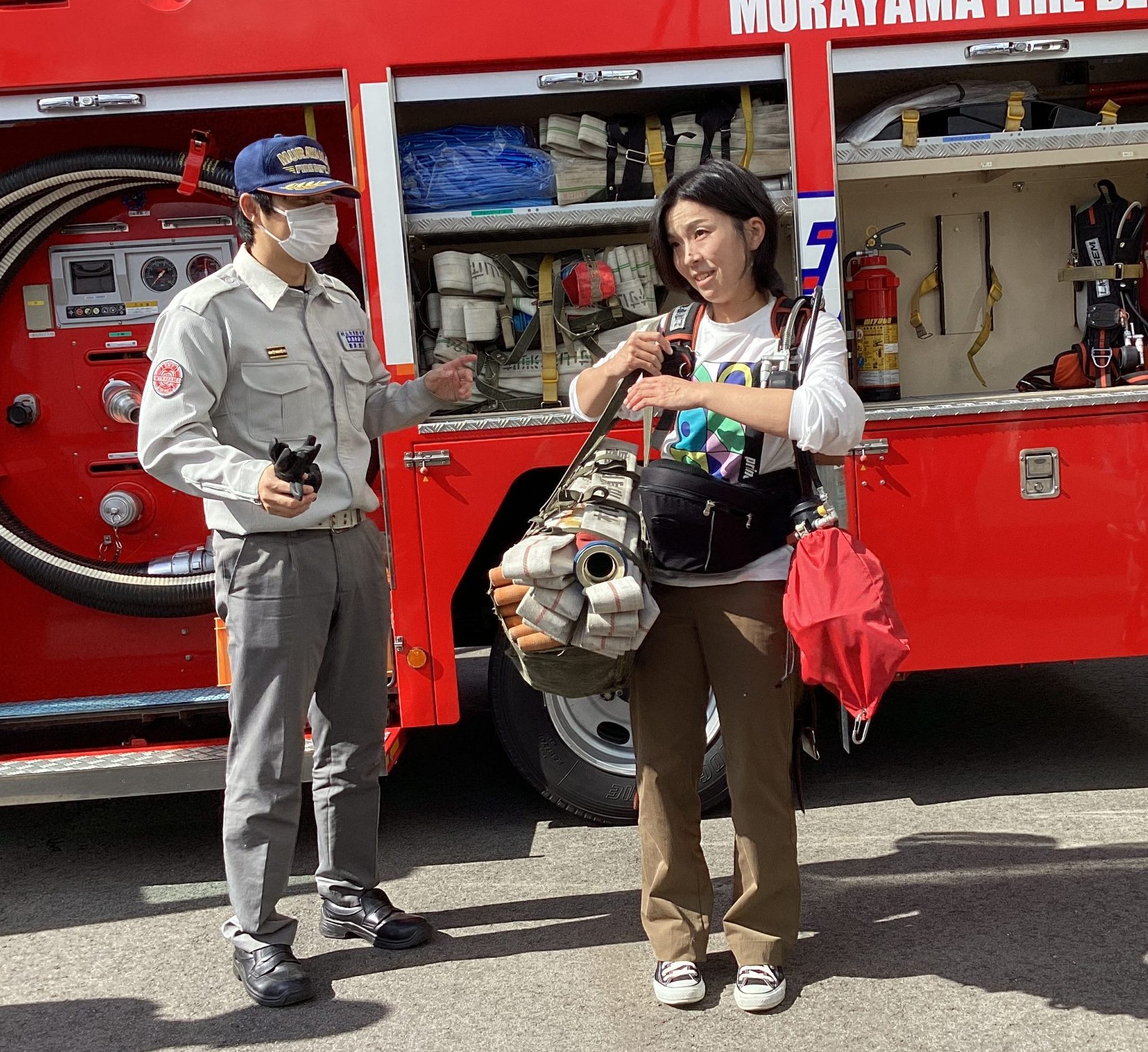 村山市消防署のみなさんが、ふだんどんなお仕事をしているのか、どんな時にどんな車両で出動するのかを、たくさん教えてくださいました。