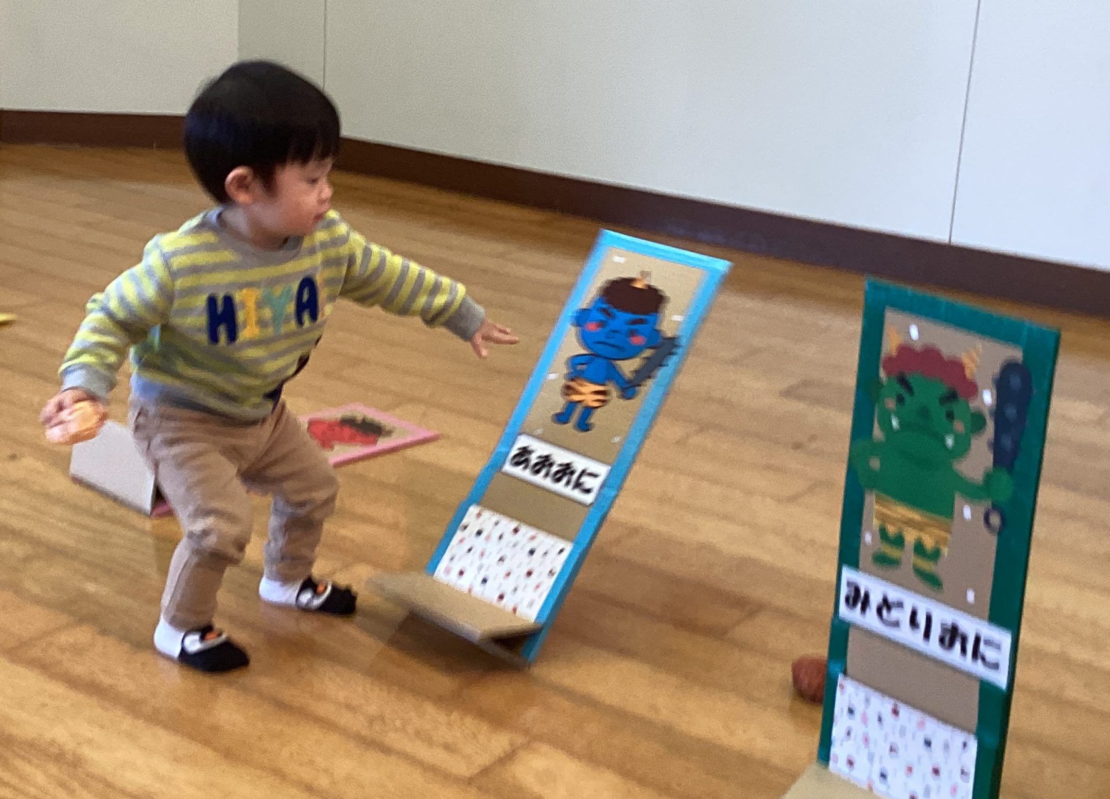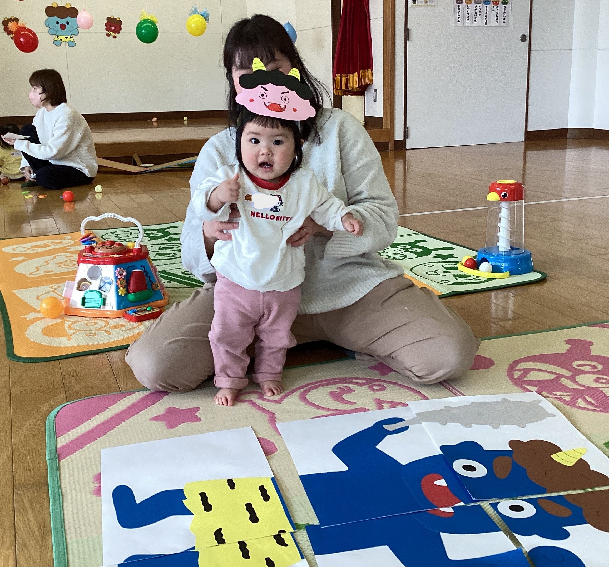 わくわく広場では子どもとお母さんが楽しみながら、節分の雰囲気を感じてもらえるような内容で過ごしていただきました。