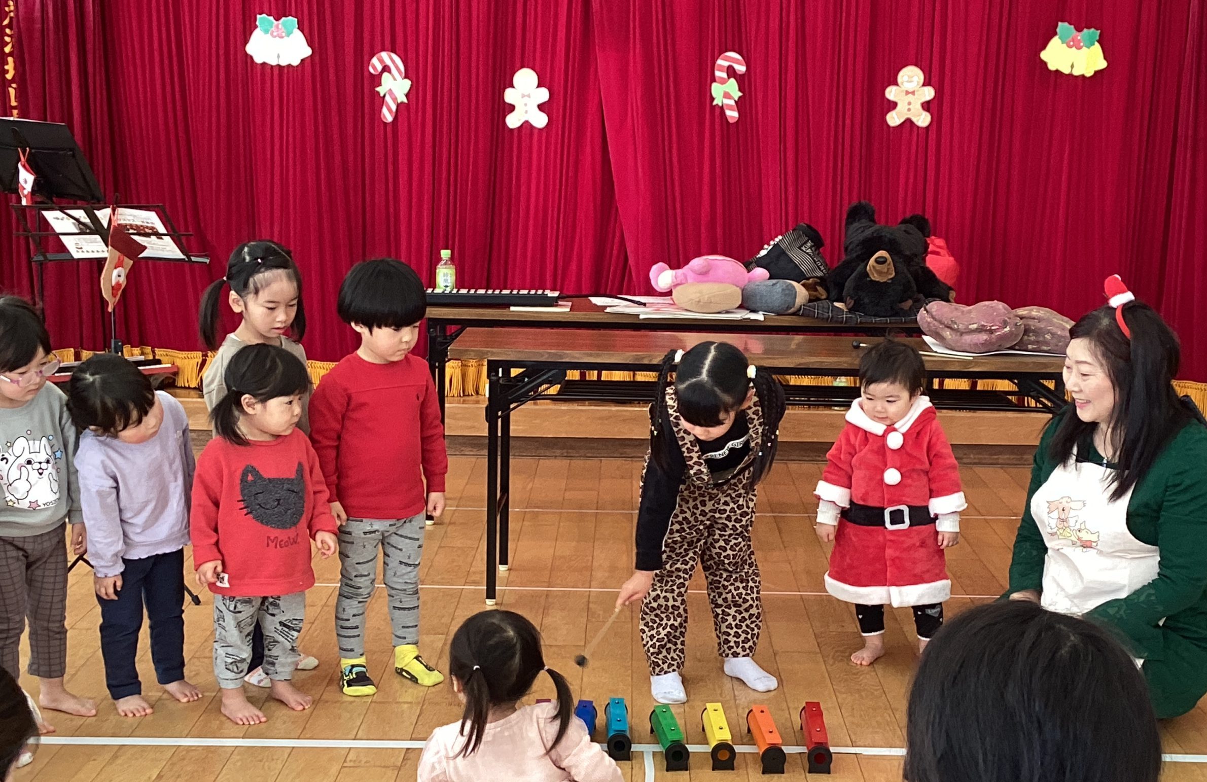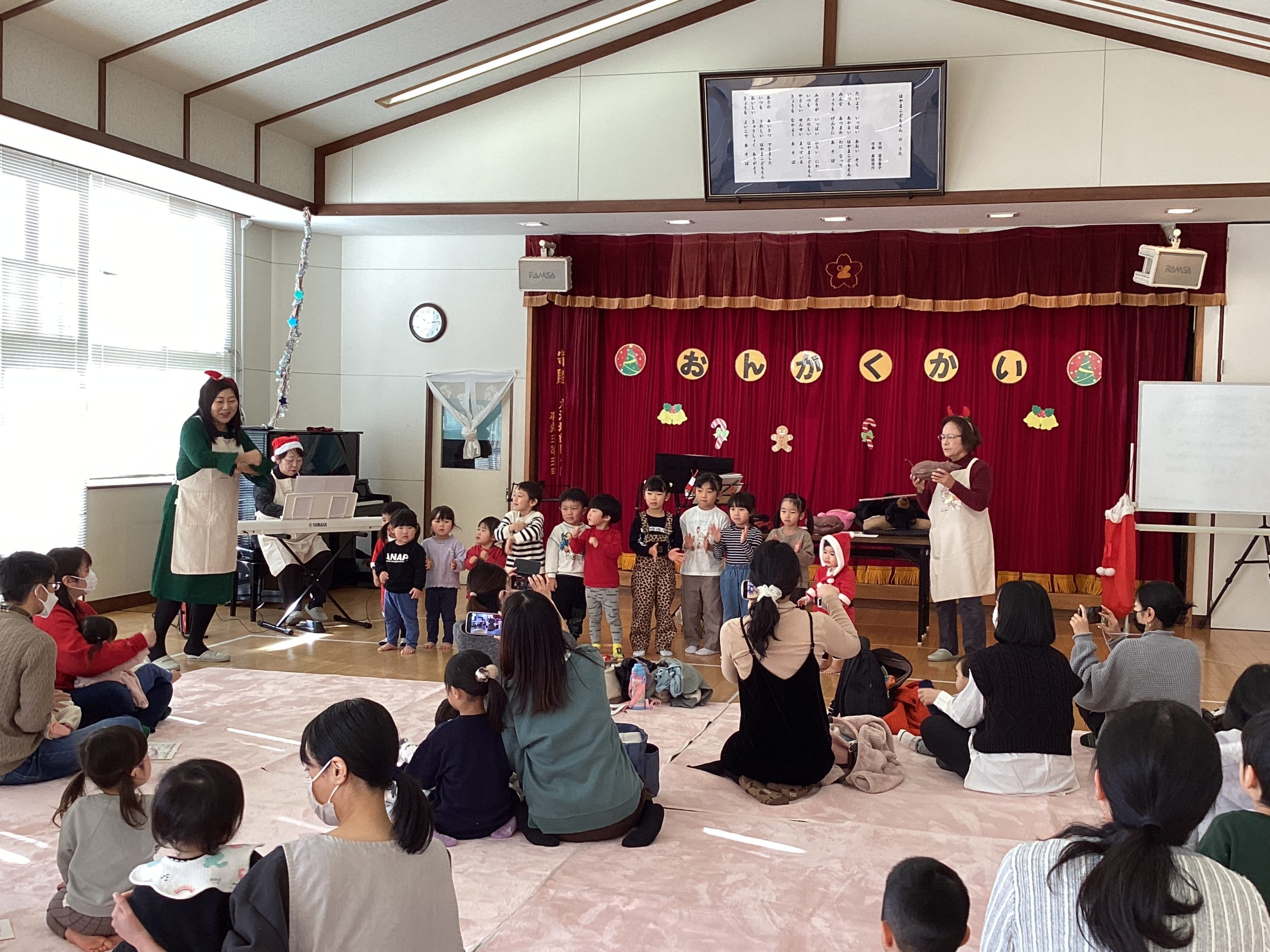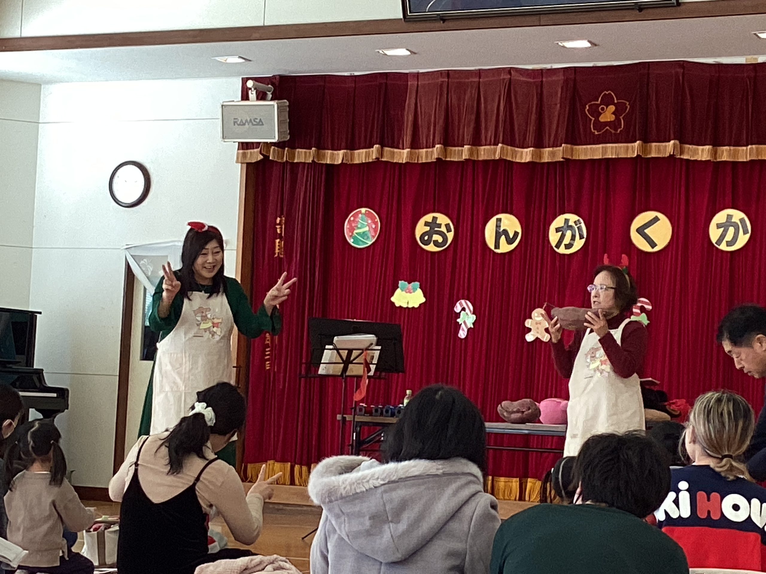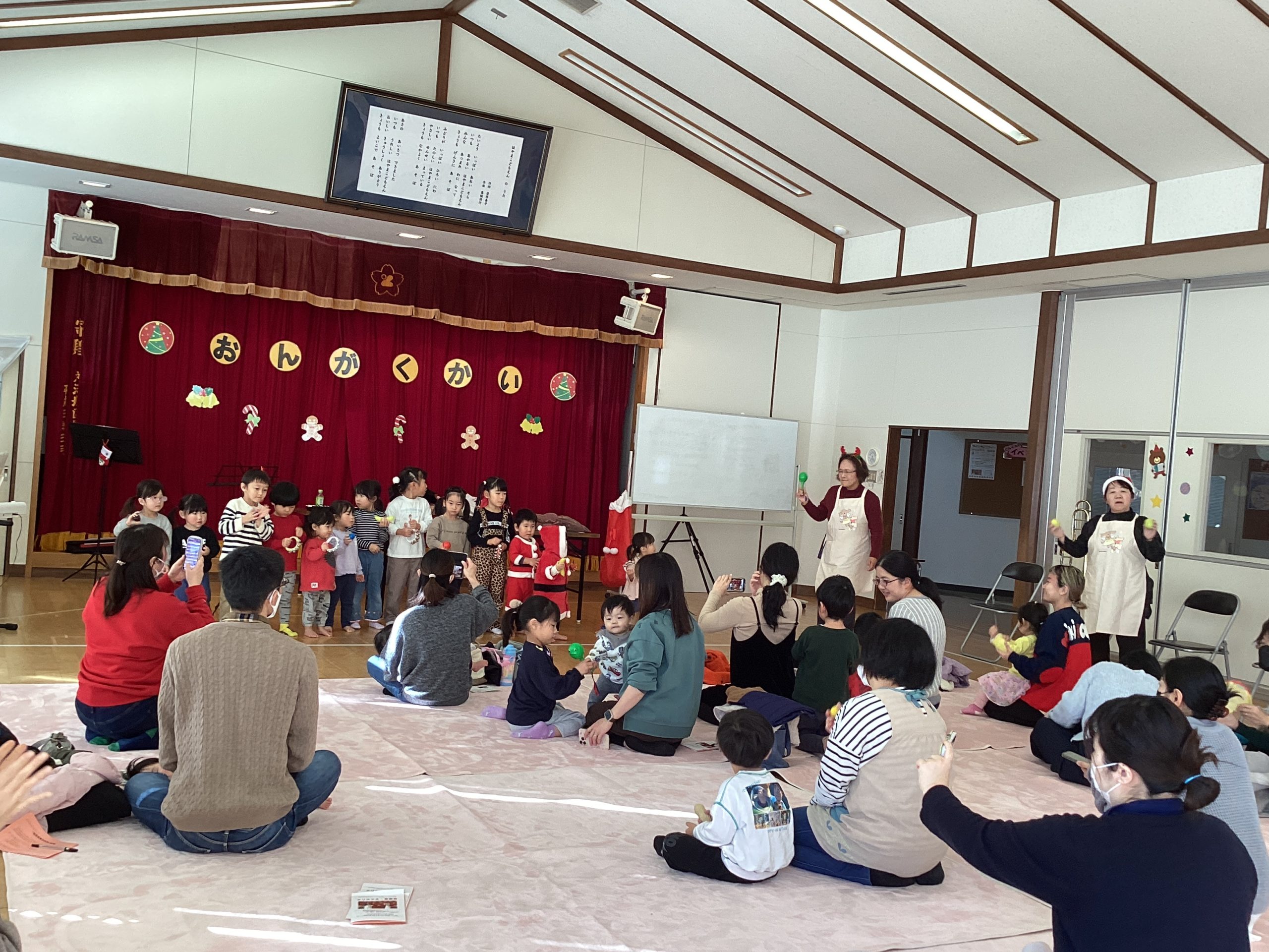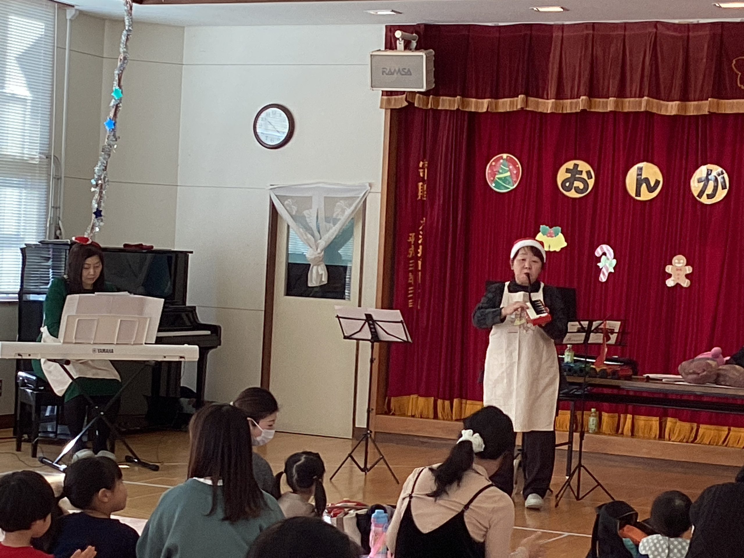 12月6日(土)に幼児共育ふれあい広場対象事業の一つとして、にこにこ音楽子育て支援の会 会長の二瓶明美先生をお招きをして、「クリスマス音楽会」を開催しました。
