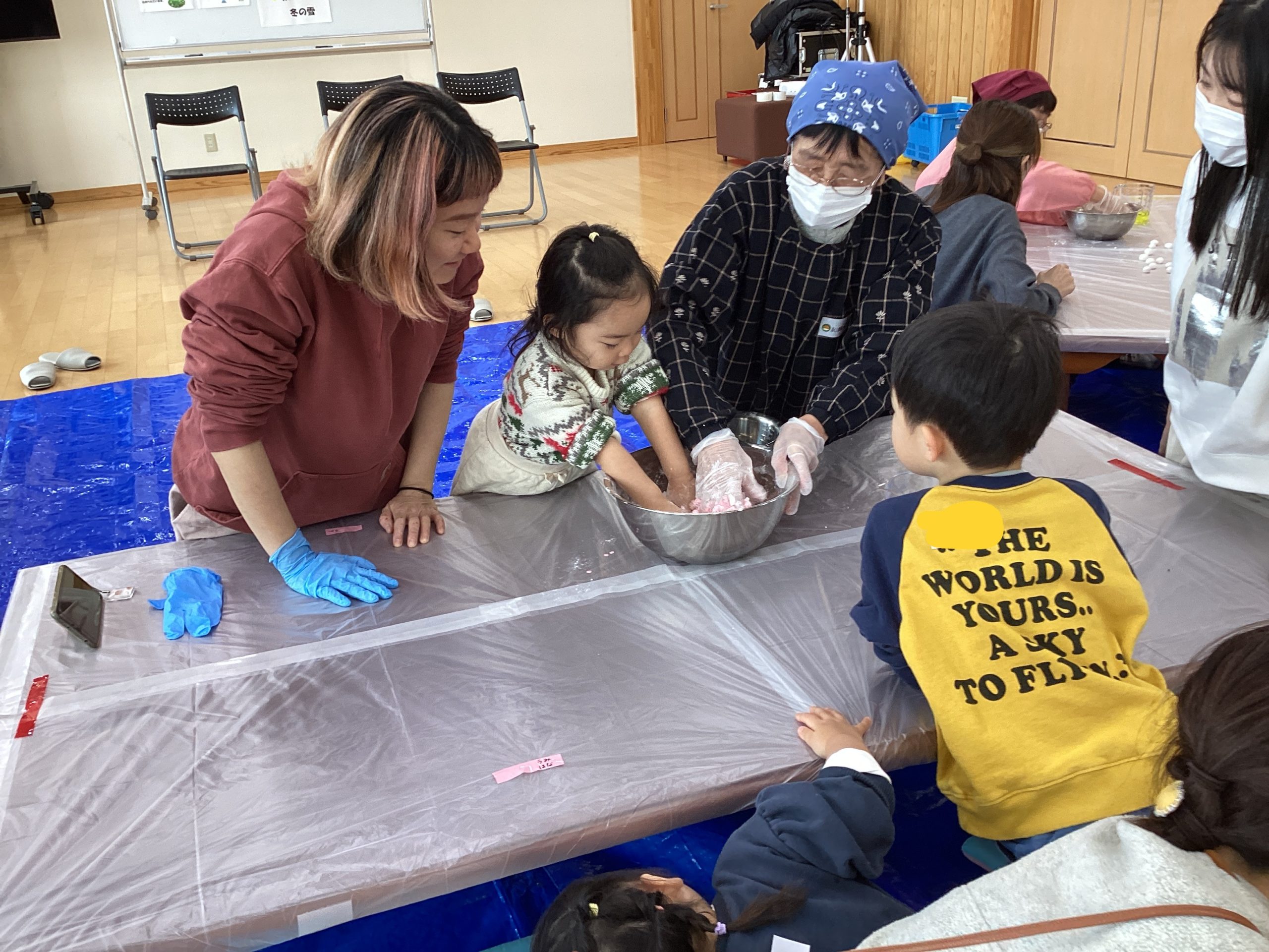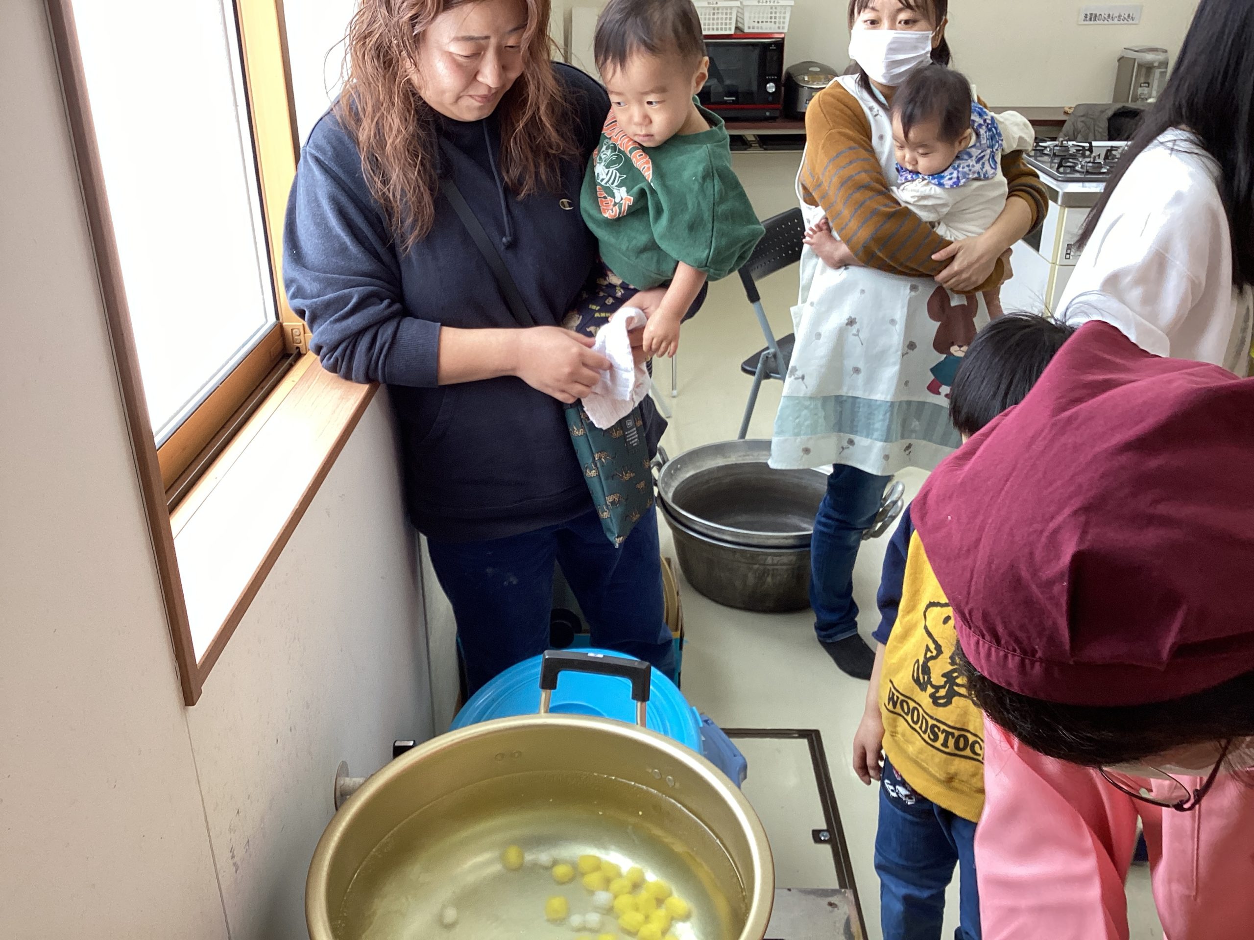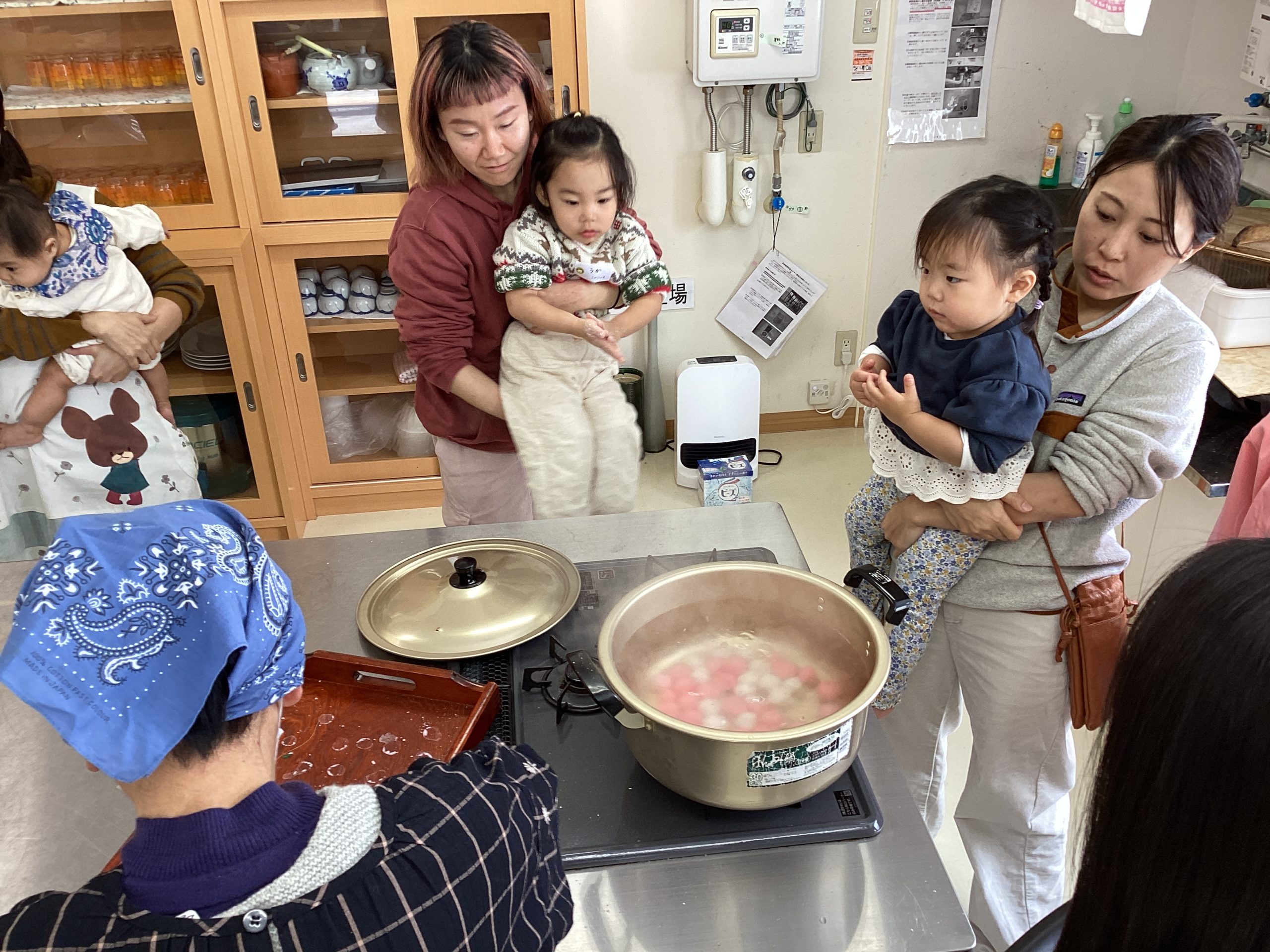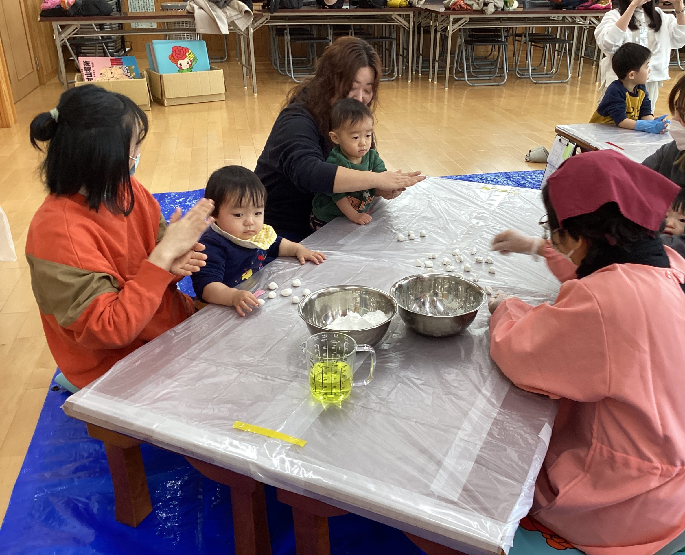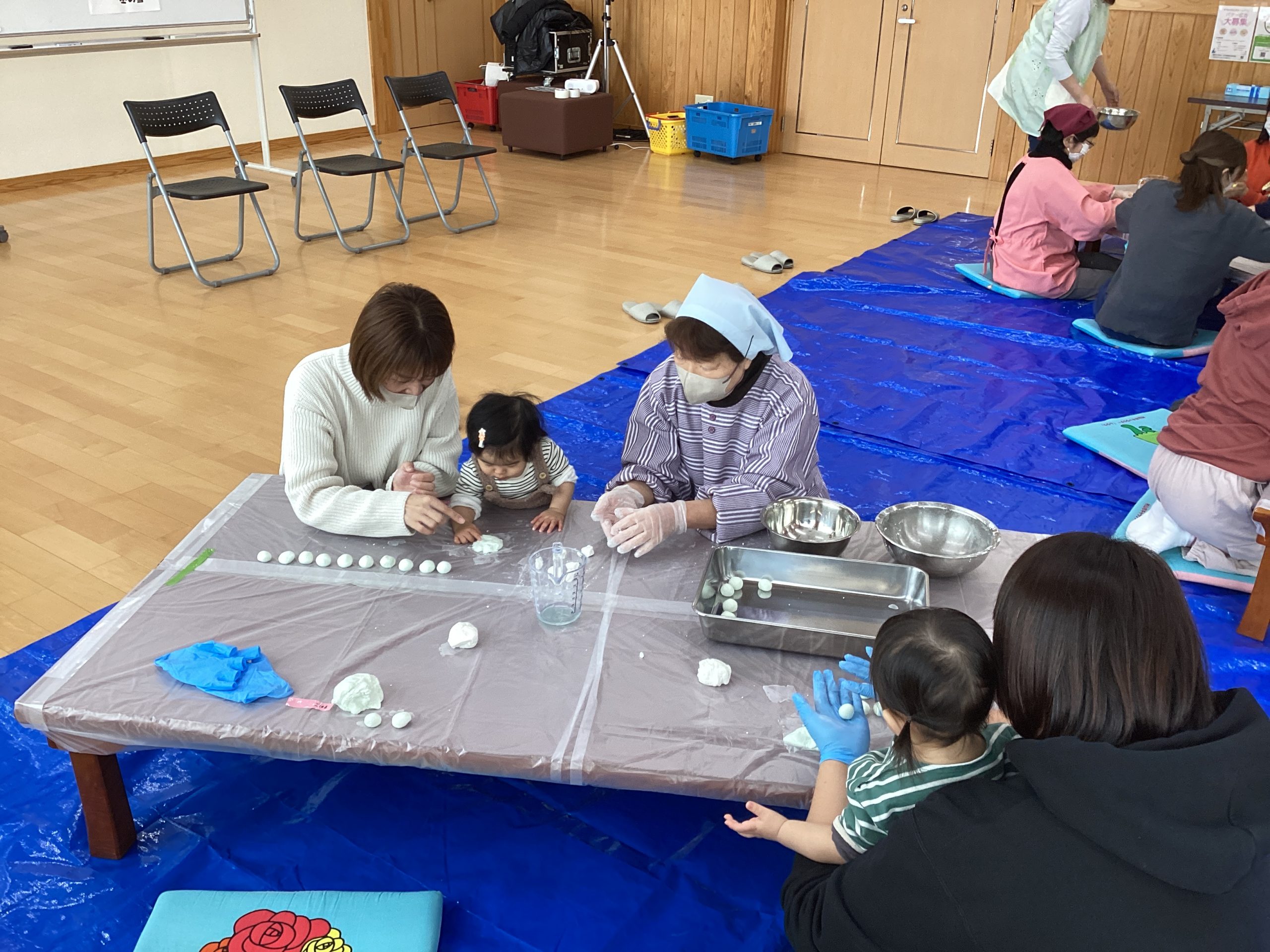 「白玉粉といっしょだね」「おうちでも作ってみようか」など、親子で会話しながら楽しく見学しました。
