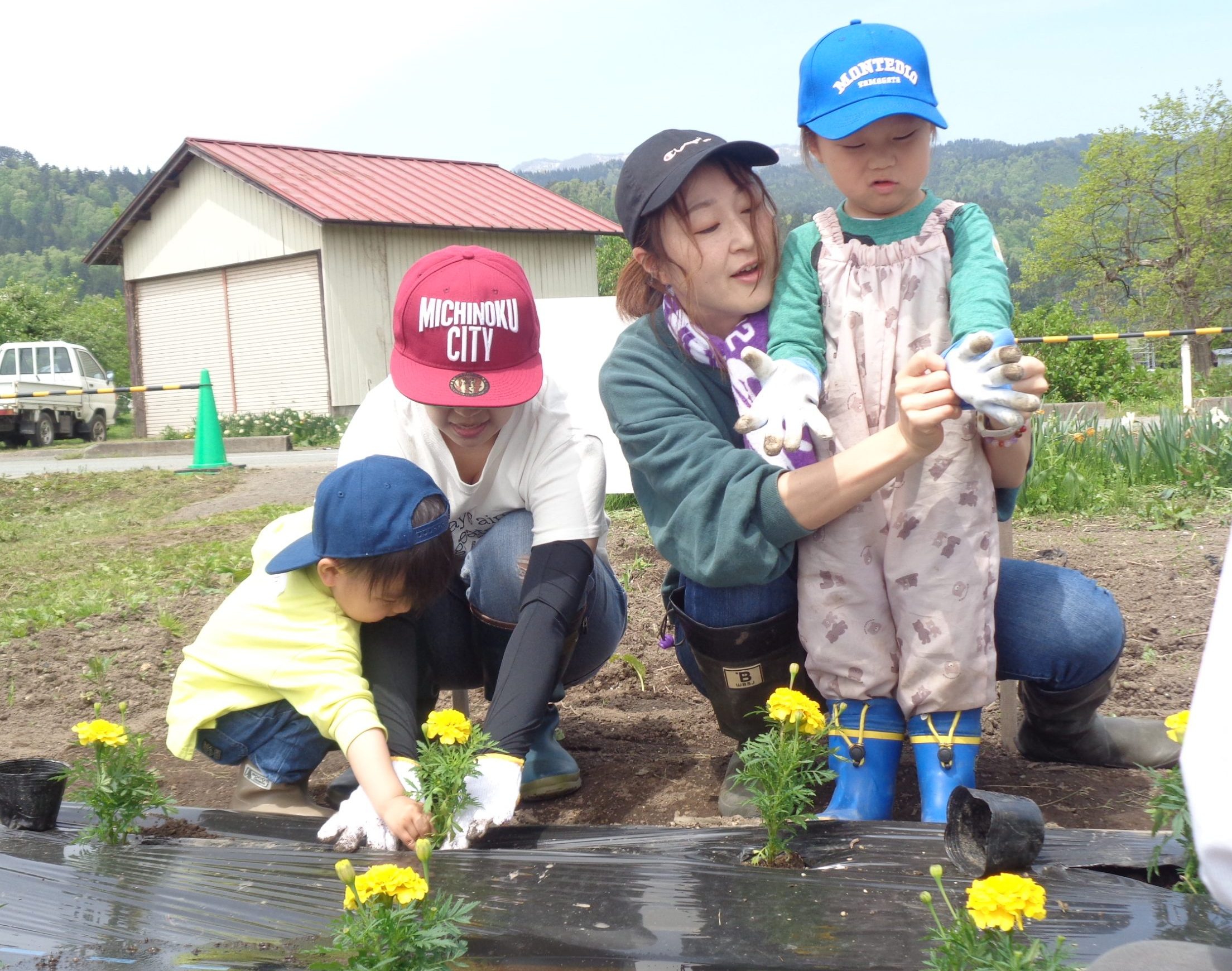 さつまいものほかに、花の苗も植えました。今日はまだ小さな苗たちも、夏を迎えるころには色とりどりの見事な花を咲かせていることでしょう。