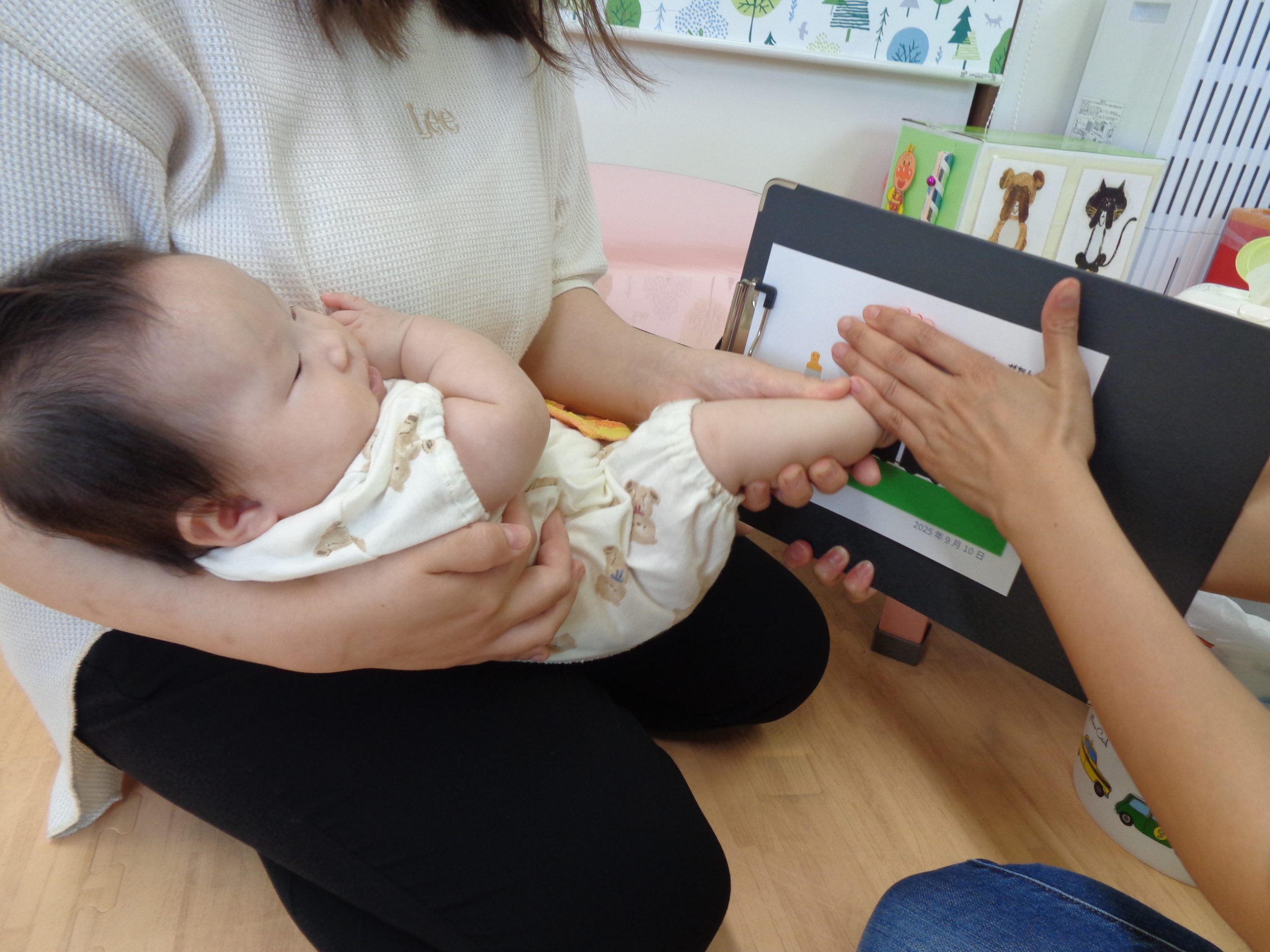 ↓おててを開くのが難しい小さな赤ちゃんは足形を押すこともできます☺