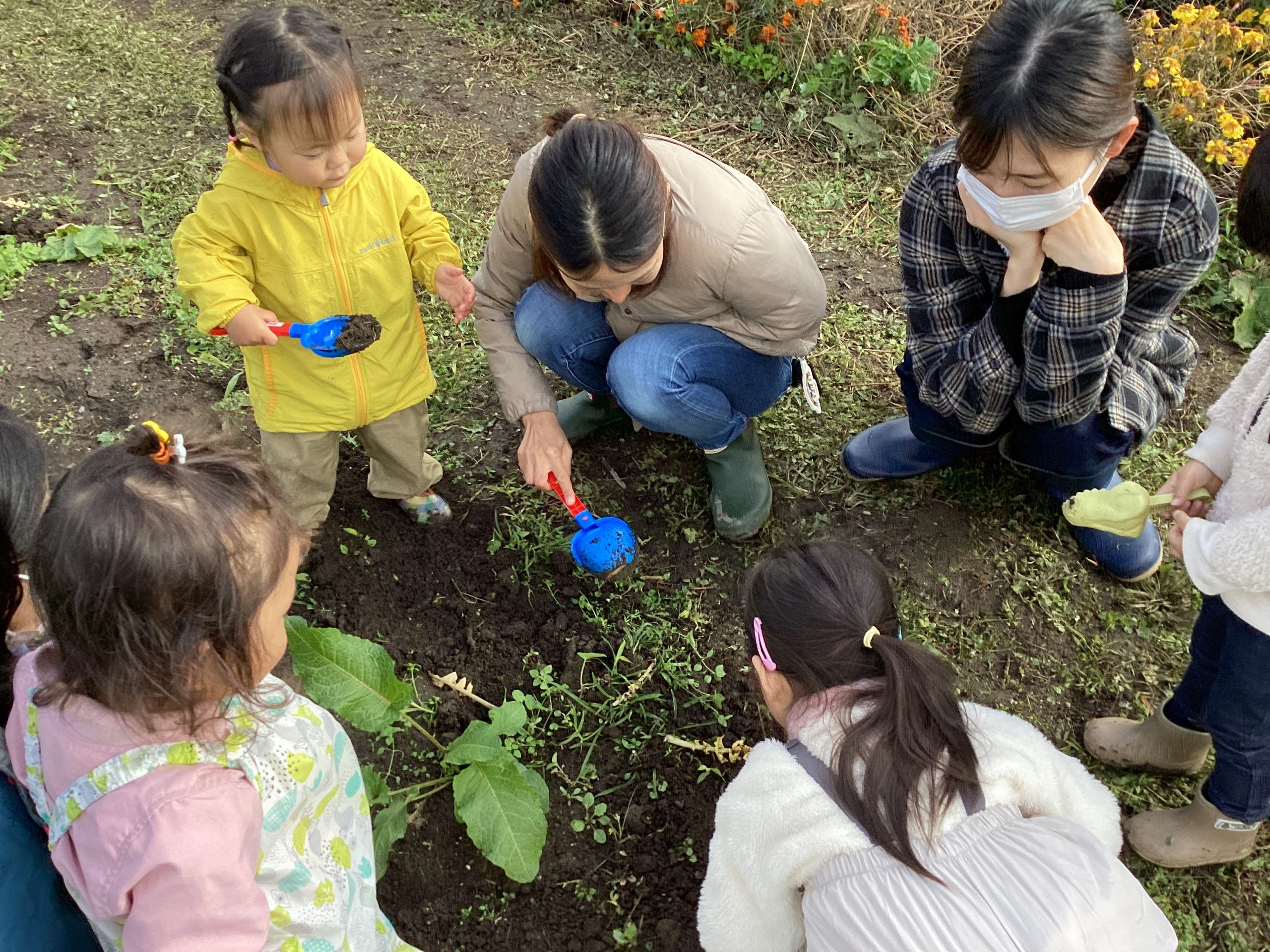大根を収穫した後はみんなで土いじりをしたり、おやつを食べて休憩したり自由に過ごしました。