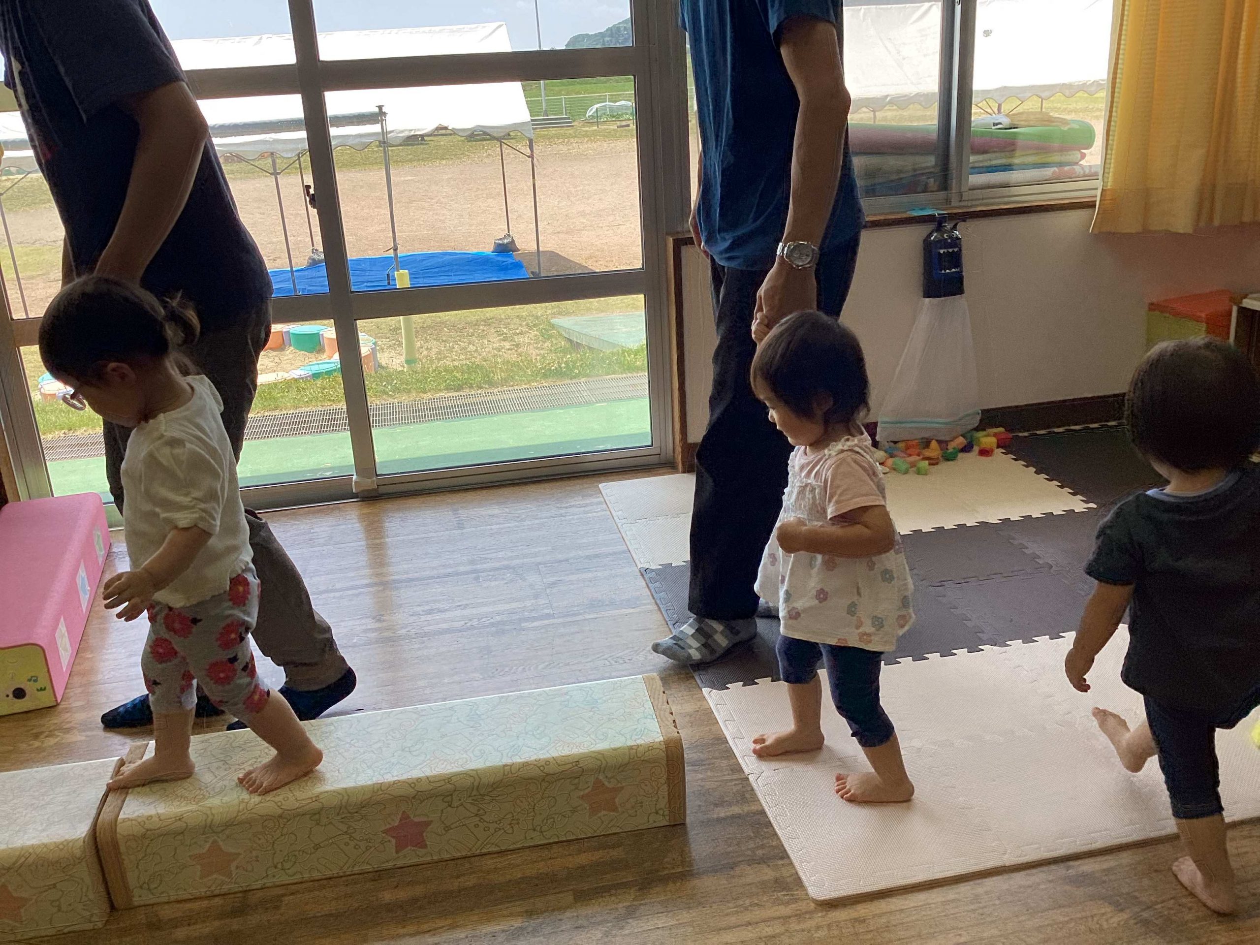 お家の人から手を添えてもらい嬉しそう♡ 上手にのぼれたね!