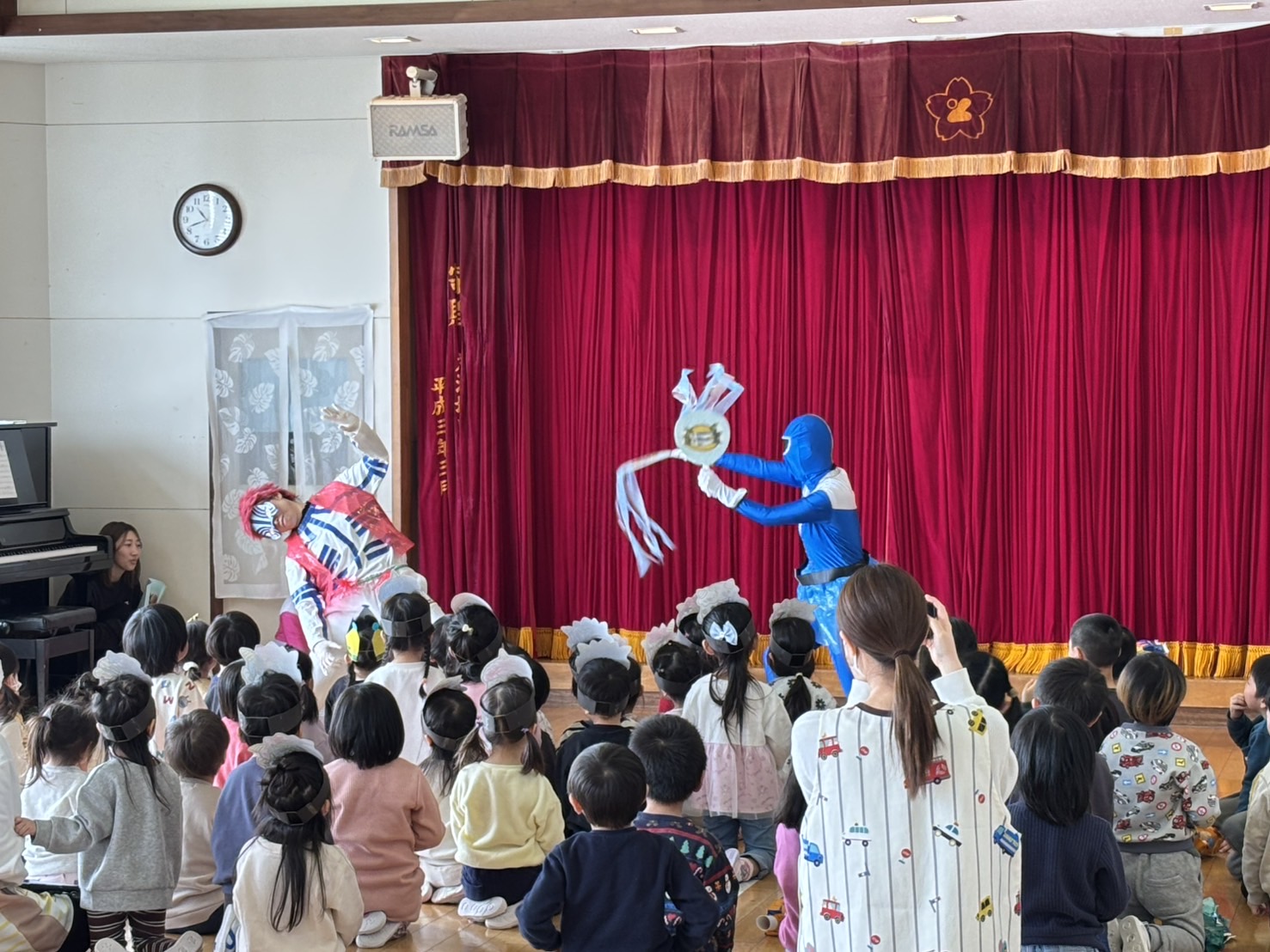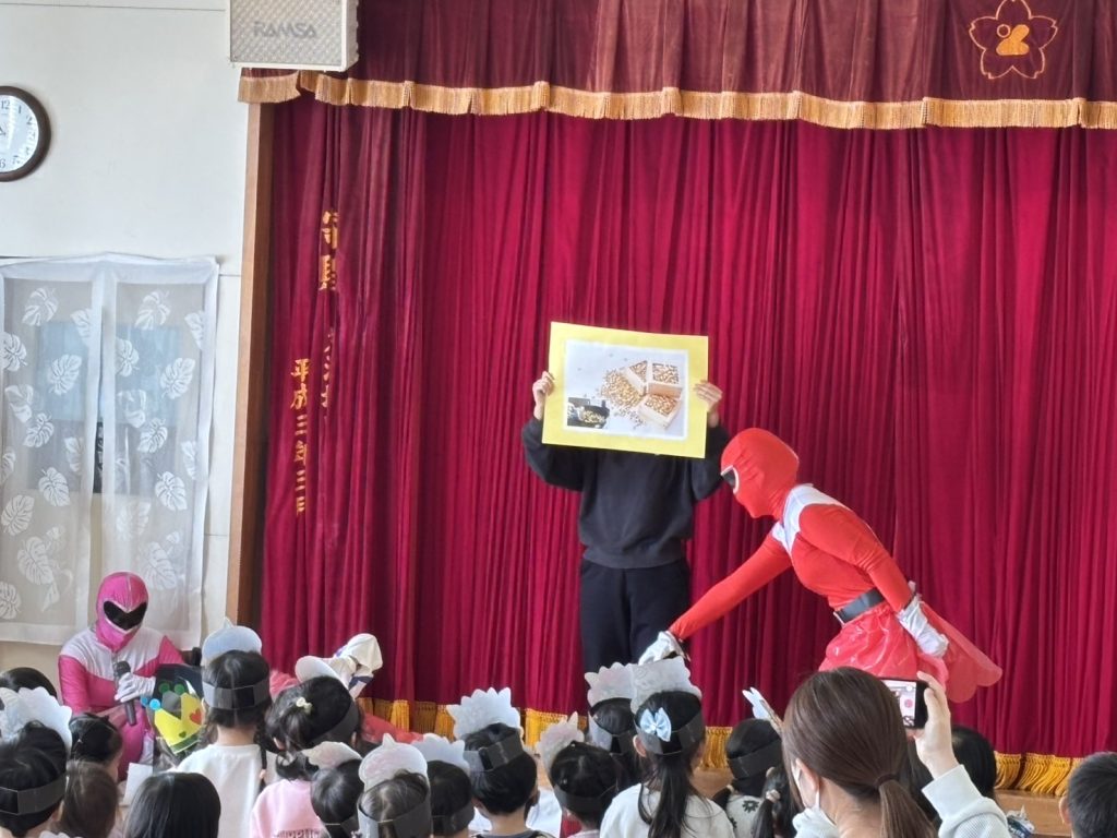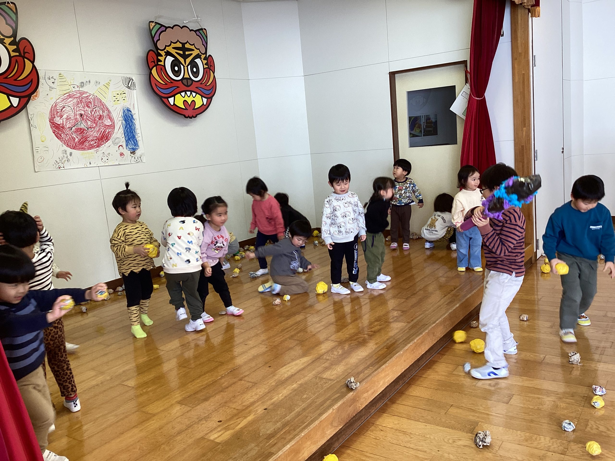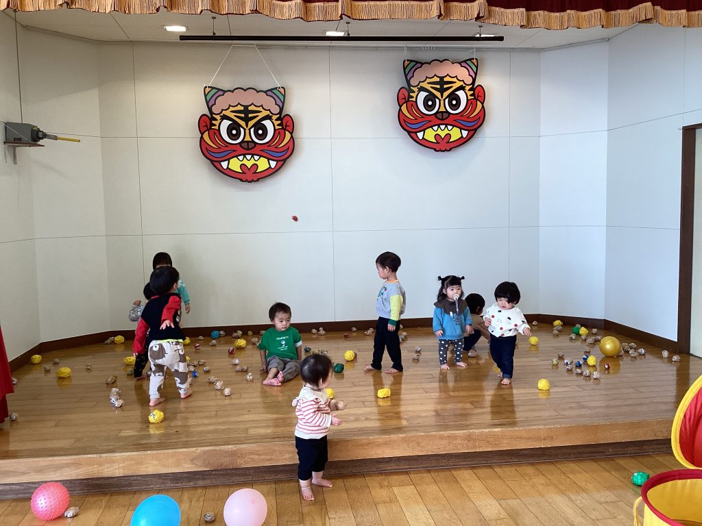 みんなで歌を歌ったり、園長先生のお話を聞いたりして節分への理解も深まったところで…