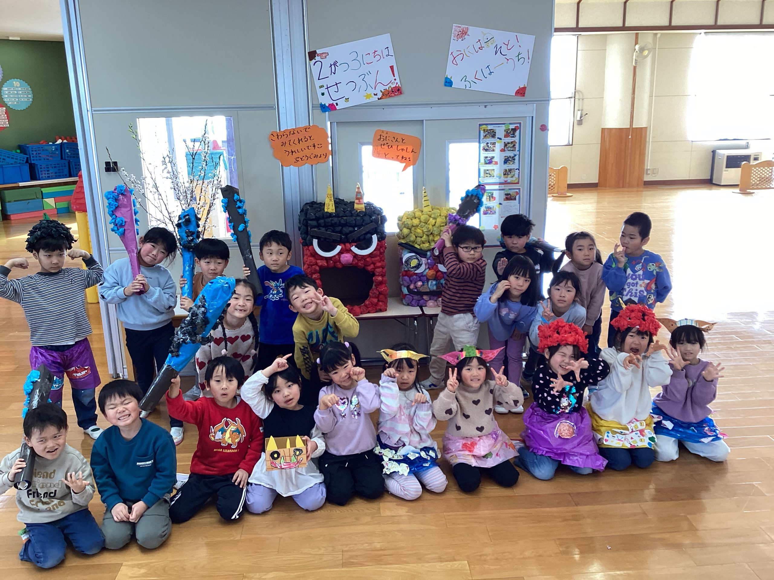 先日2月3日節分の日に、はやまこども園でも「節分誕生会」を行いました!